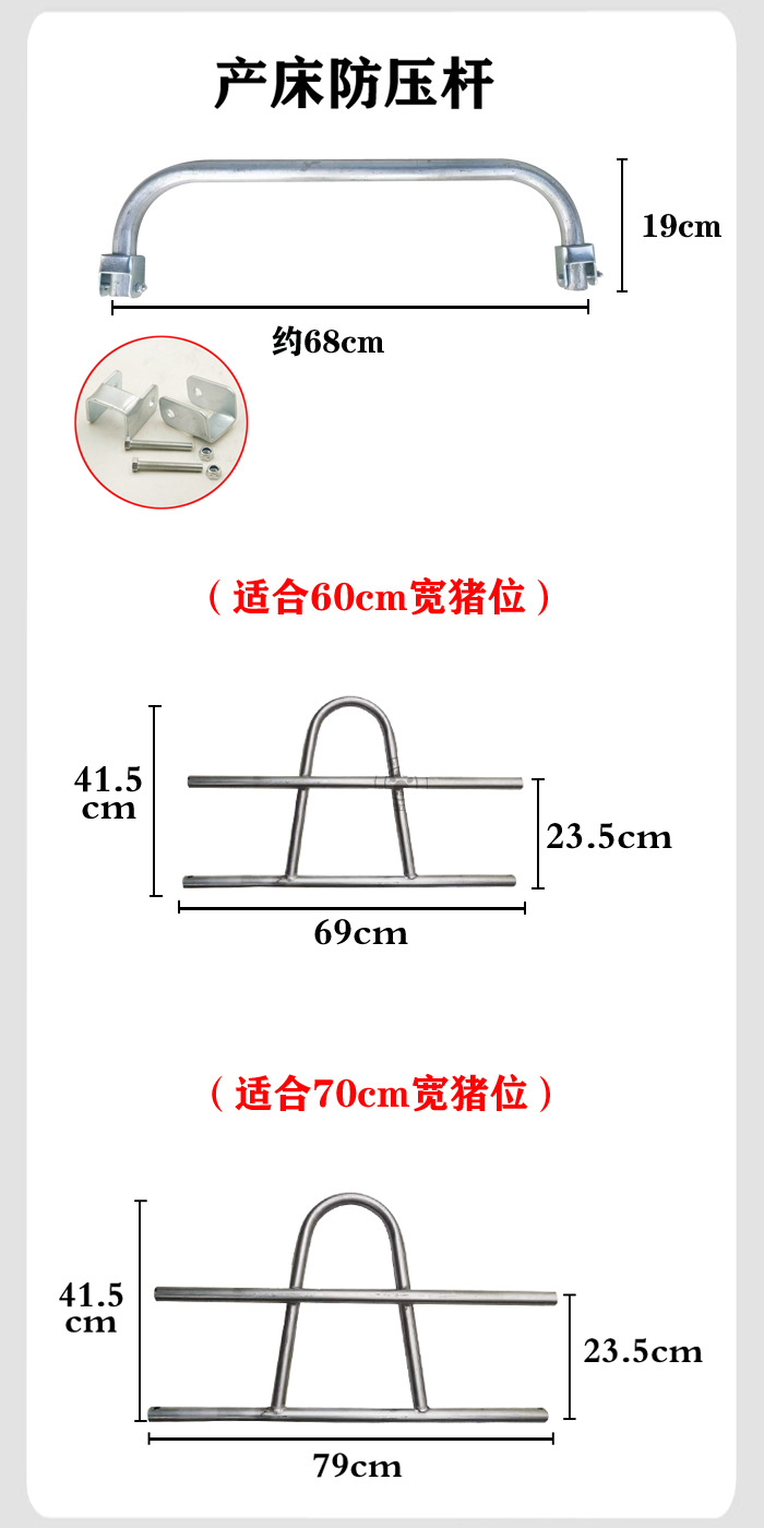 Трубка для свиньи для родильной кровати (5 шт. в упаковке); 1 противоциркуляционный стержень для акушерской кровати (с принадлежностями); Задняя стойка (подходит для положения свиньи шириной 60 см); Задняя стойка (подходит для положения свиньи шириной 70 см); Небольшая боковая дверца кровати для родов имеет ширину 40 см (подходит для композитных панелей шириной 45 см).; Ширина задней двери кровати для доставки составляет 53 см (подходит для отверстий для свиней шириной 60 см).; Ширина задней двери кровати для доставки составляет 63 см (подходит для отверстий для свиней шириной 70 см).; Ширина задней двери позиционирующей планки составляет 53 см (подходит для положения свиньи шириной 60 см).; Ширина задней дверцы позиционирующей планки составляет 63 см (подходит для положения свиньи шириной 70 см).; Передняя дверь кровати для родов имеет ширину 53 см (подходит для отверстий для свиней шириной 60 см).; Ширина передней двери кровати для доставки составляет 63 см (подходит для положения свиньи шириной 70 см).; Передняя дверь кровати для доставки имеет ширину прорези 53 см (подходит для прорезей для свиней шириной 60 см).; Передняя дверь кровати для доставки имеет прорези шириной 63 см (подходит для кровати для свиней шириной 70 см).; 1 шт. большая рама для лежанки для поросят (правая сторона); 1 шт. большая рама для лежанки для поросят (левая сторона); Постельная кровать №2 ограждение; Каркас кровати №1 большой забор; забор для детской площадки; Детская без ворот-забора; Детский короткий забор (без ворот); Большой забор с отверстиями посередине детской; Большой забор для детской; 1 дверь детской комнаты; 1 часть рамы позиционирующей планки