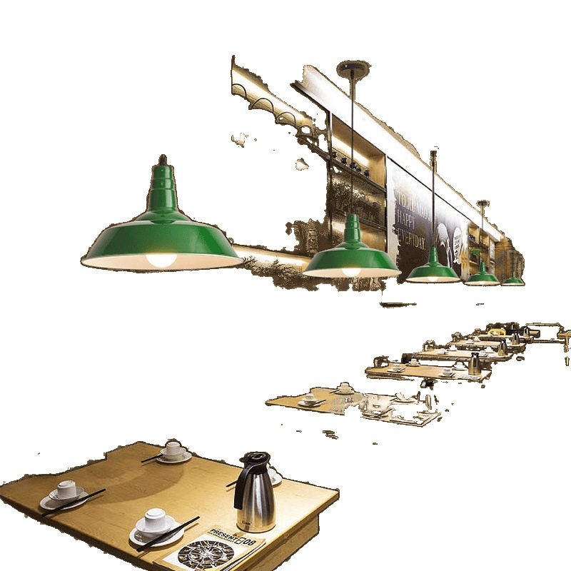 Промышленная люстра в стиле ретро в гонконгском стиле, персонализированный ресторан, ресторан с горячими кастрюлями, гостиничное общепит, магазин чая с молоком для барбекю, зеленая ностальгическая люстра