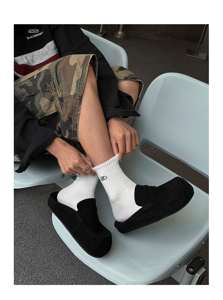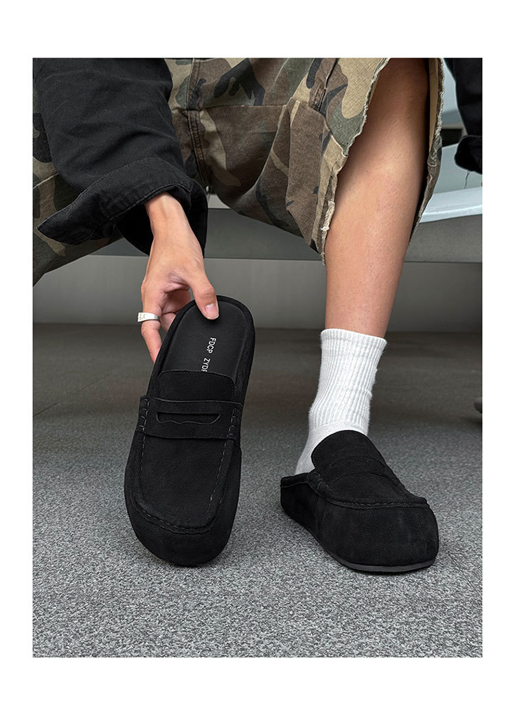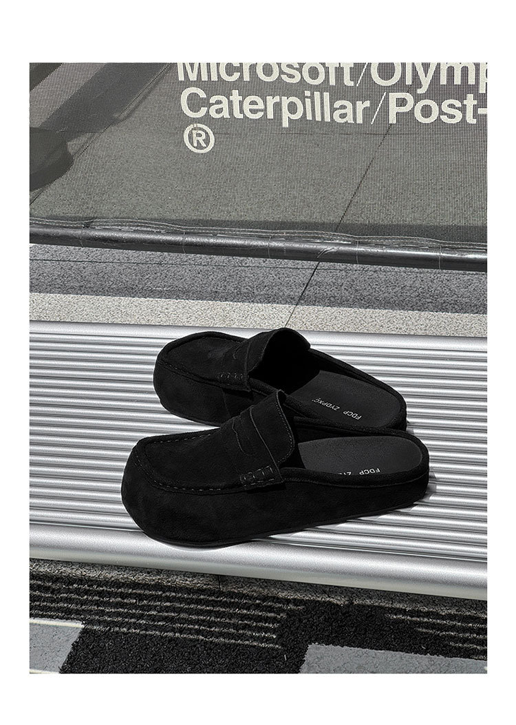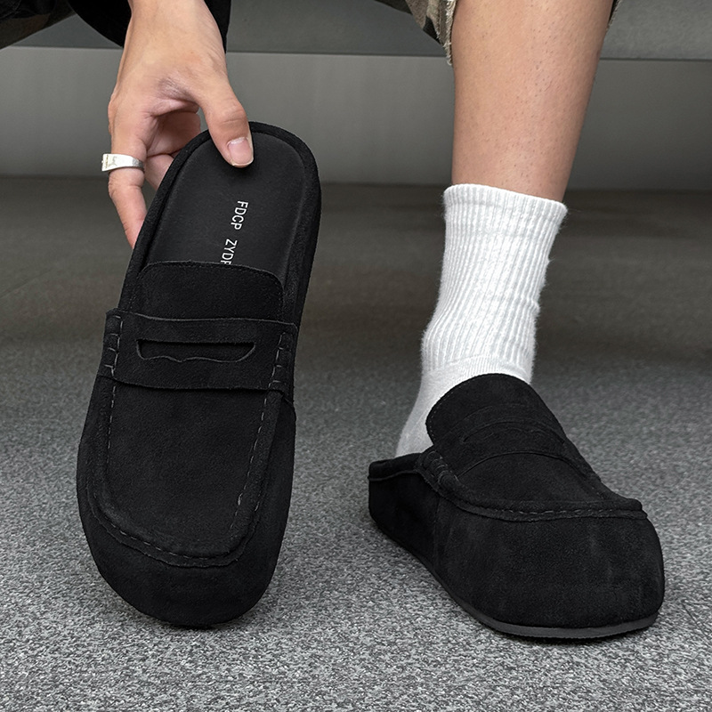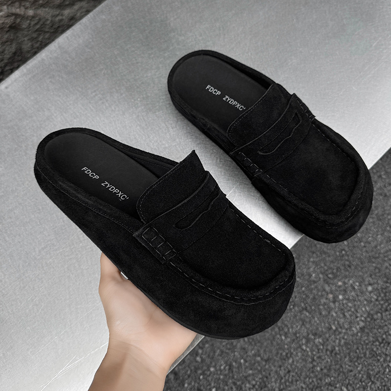 Ретро туфли Boken на толстой подошве с увеличенным большим пальцем ноги, повседневные уличные тапочки для ленивых, модные и универсальные 92286, черные-J