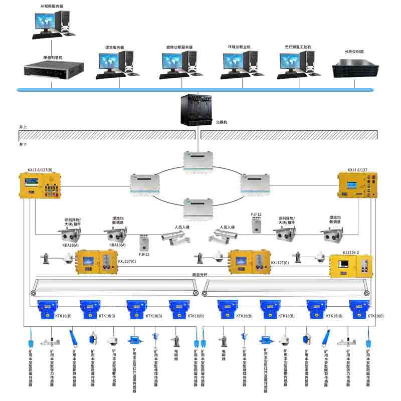 Система мониторинга конвейерных лент KJ1126 для угольных шахт: ИИ-видеомониторинг, интеллектуальный контроль потока угля, оптоволоконное измерение температуры