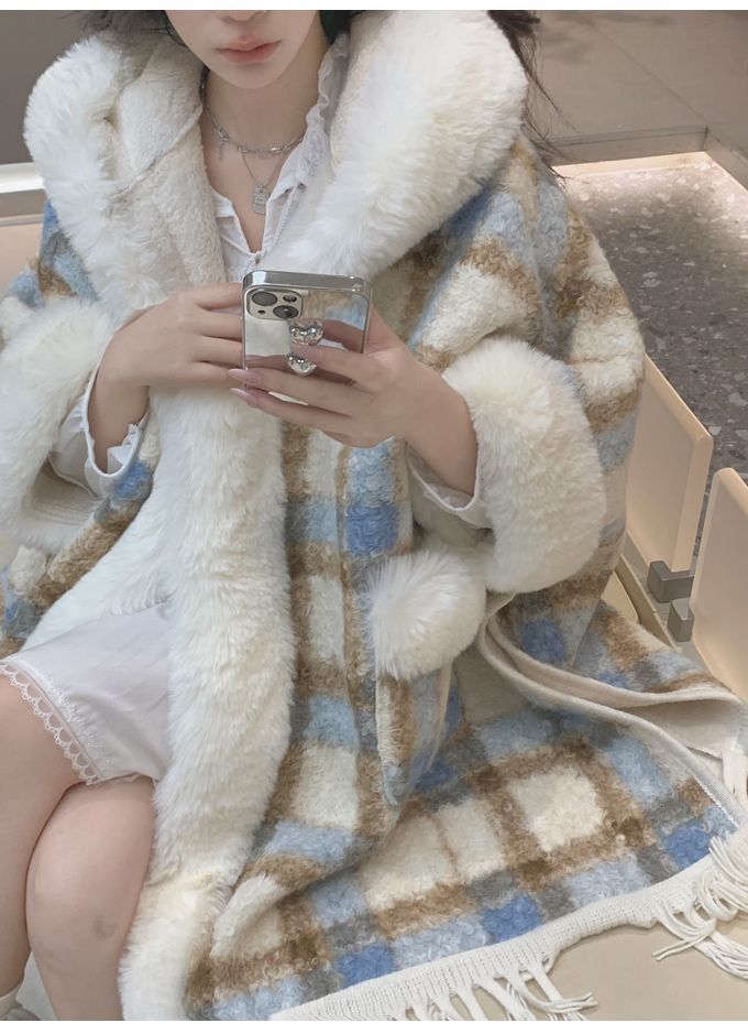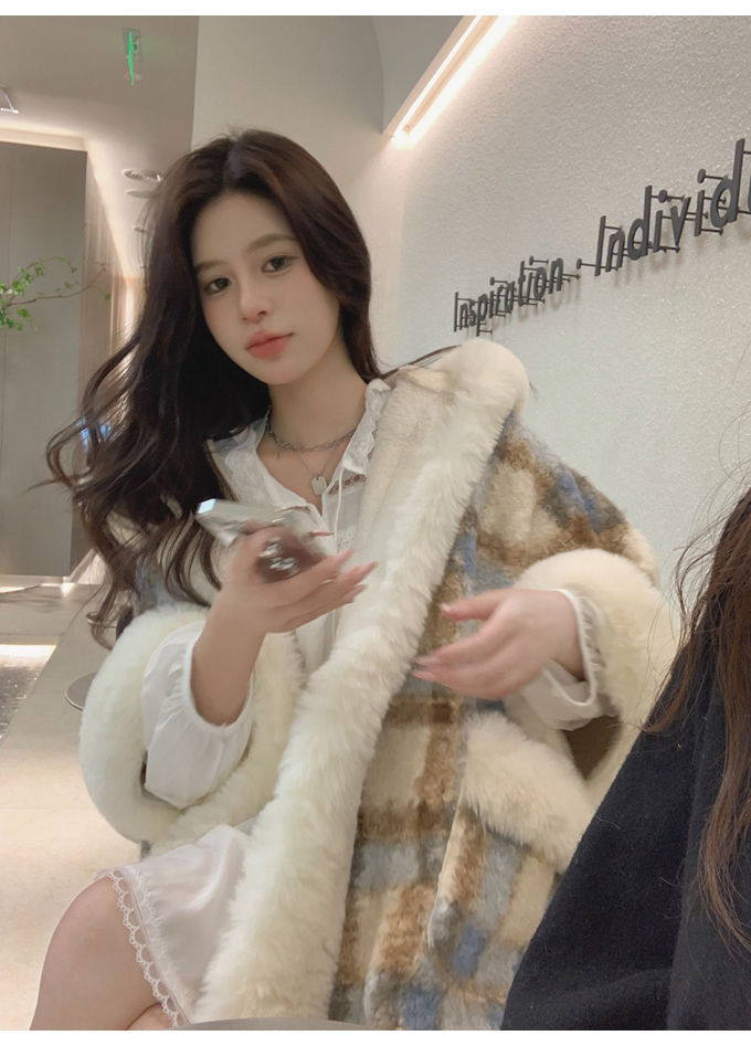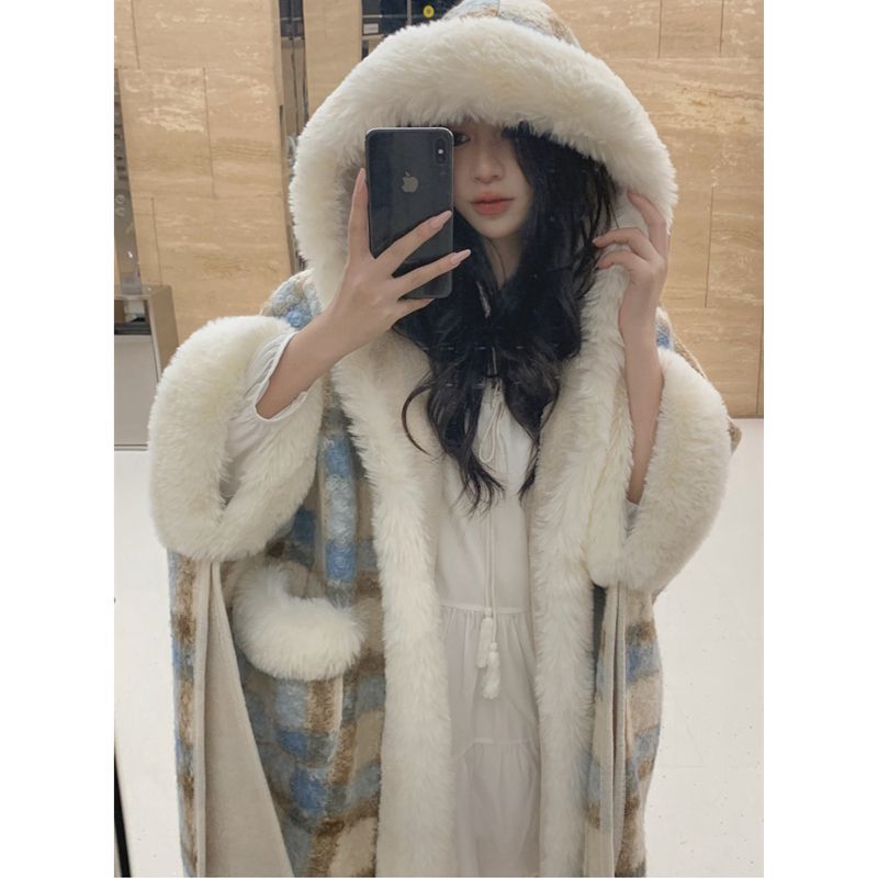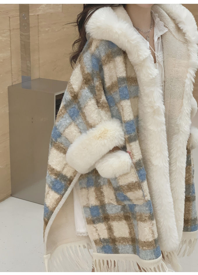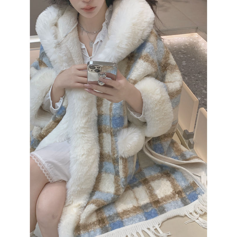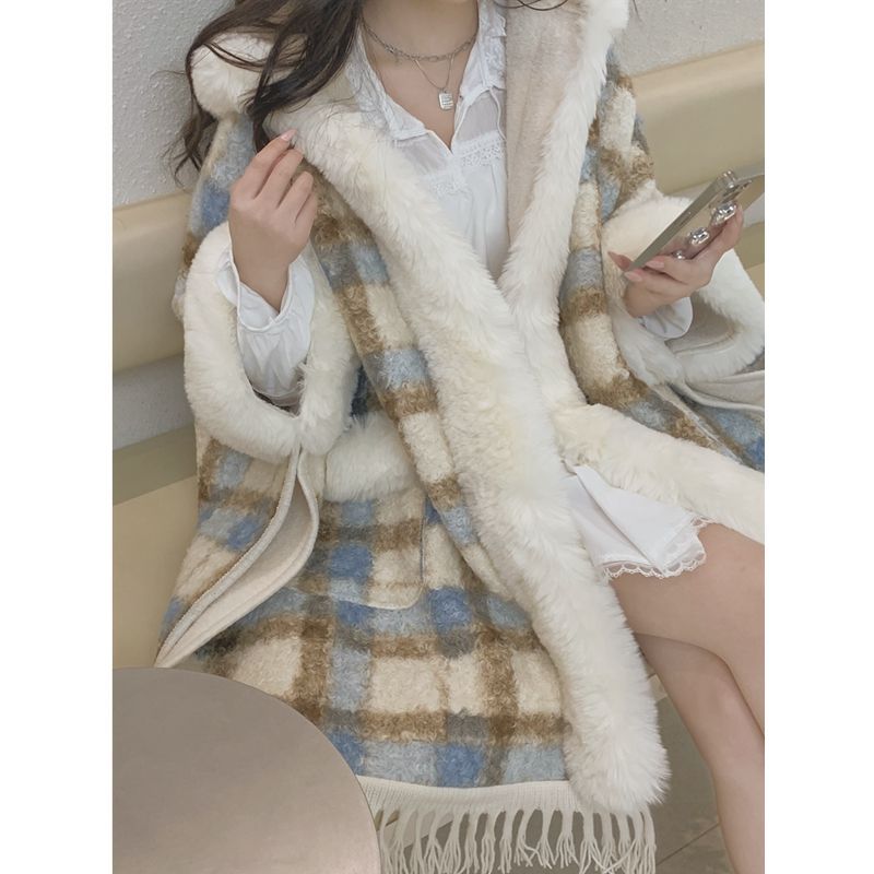 Осенне-зимнее пальто-шаль в клетку в стиле ретро, осенне-зимний новый дизайн, модный бархатный утолщенный шерстяной кардиган для женщин