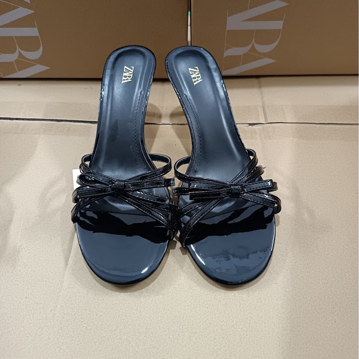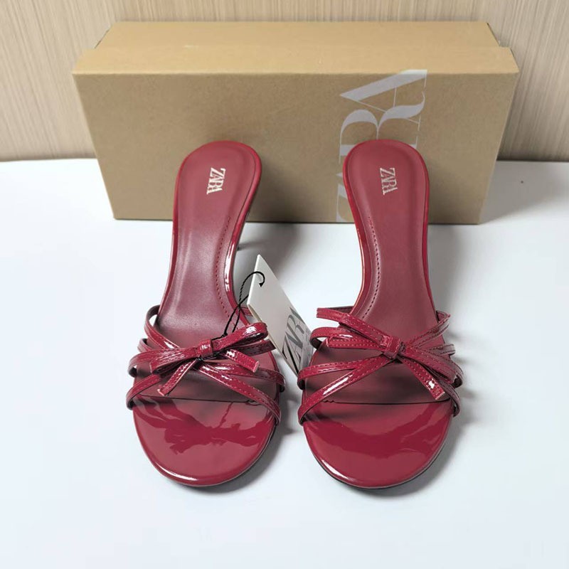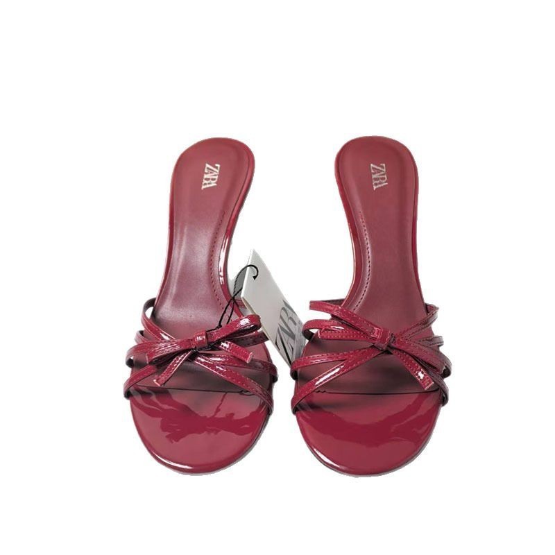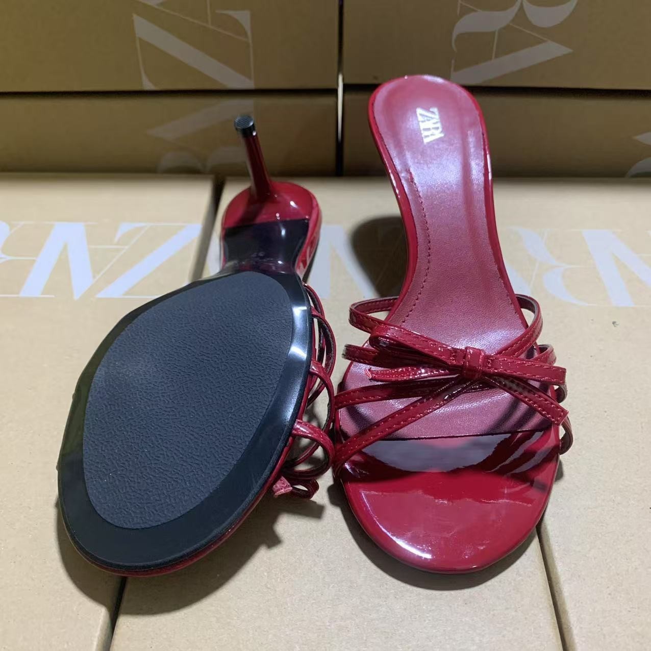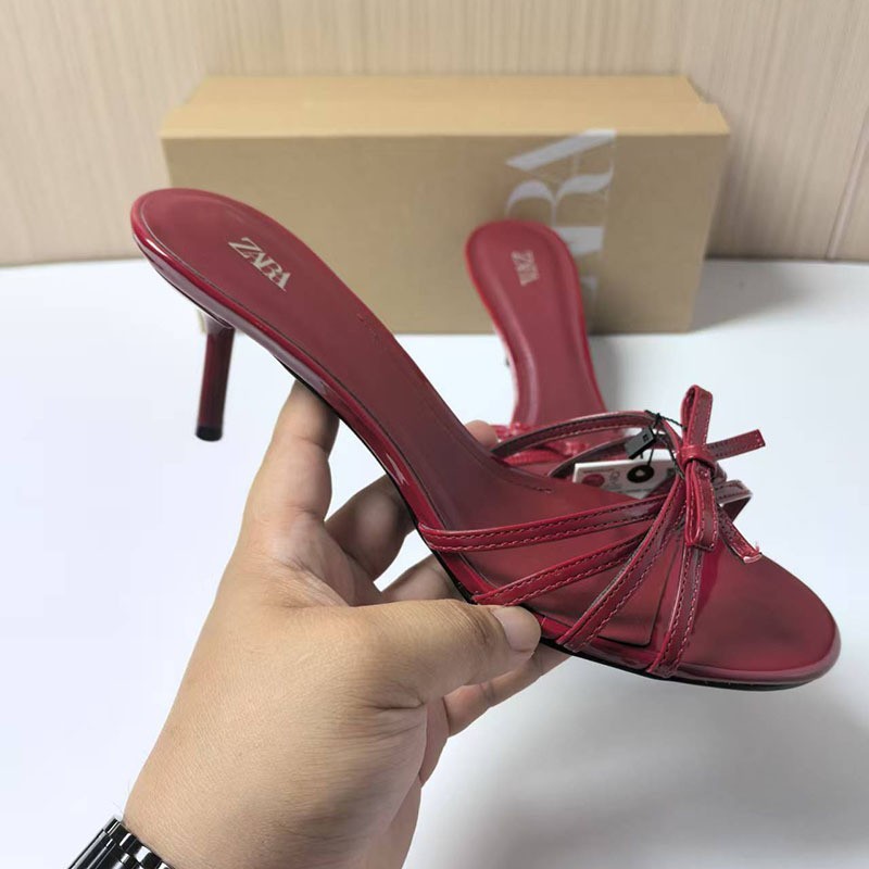 Фабрика ZA Sandals: Прямые продажи 2025 Новые красные босоножки на шпильке с круглым носком и ремешком, сексуальные модные босоножки с бантом для женщин