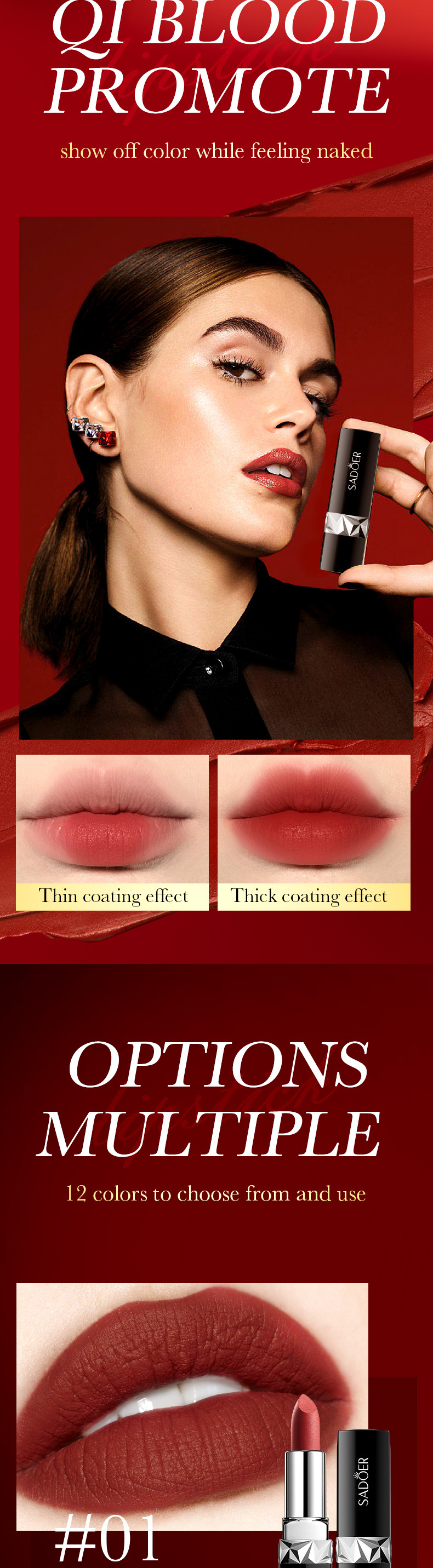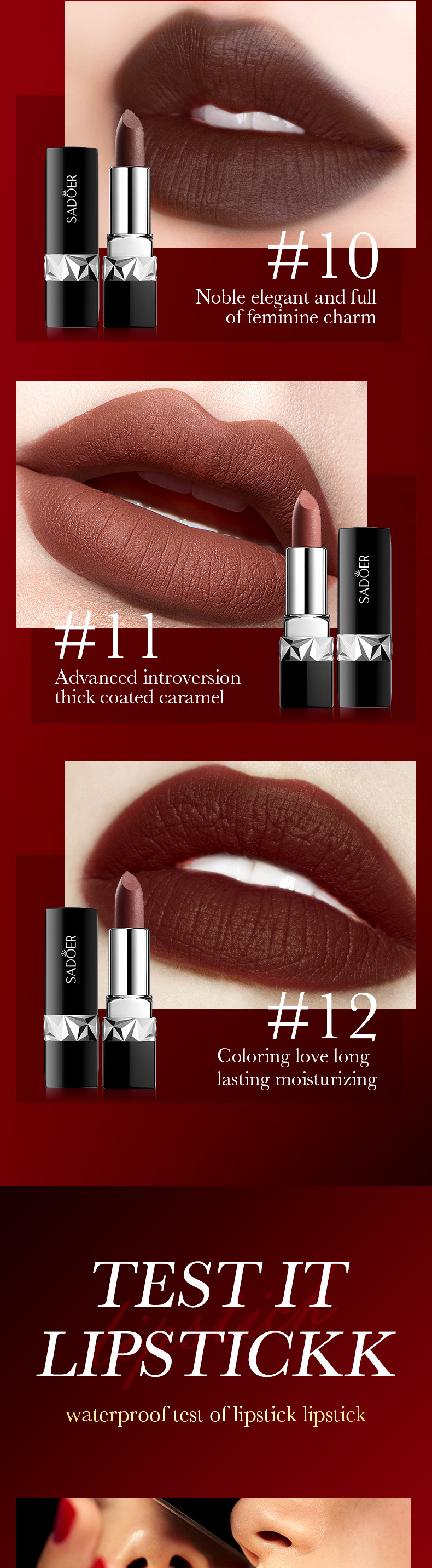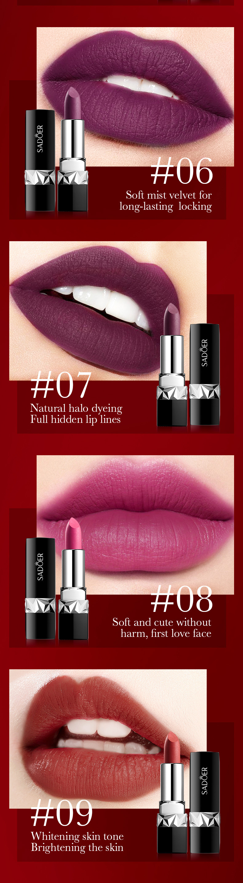 Полностью английская матовая помада SADOER с бархатистой текстурой, стойкая, не тускнеет, оптовая продажа для трансграничной торговли.