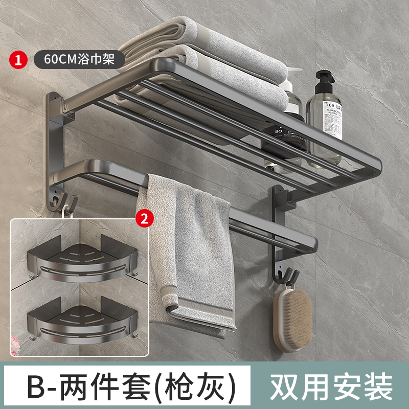 ✅ Однослойная вешалка для банных полотенец цвета пистолета, складная вешалка для полотенец без перфорации, стеллаж для хранения, вешалка для полотенец в ванной комнате, подвеска для ванной комнаты