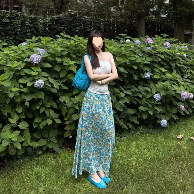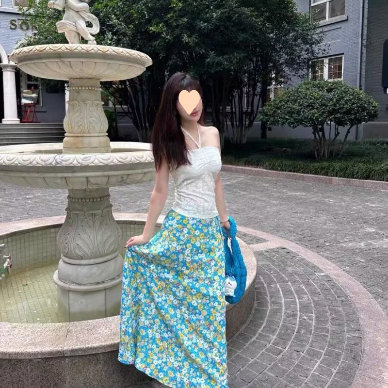 Летнее платье-слинг с цветочным принтом для женщин, новый стиль 2025 года, полный комплект для отдыха на море, юбка миди
