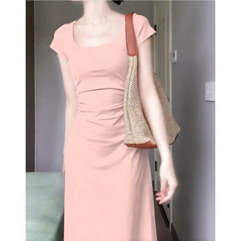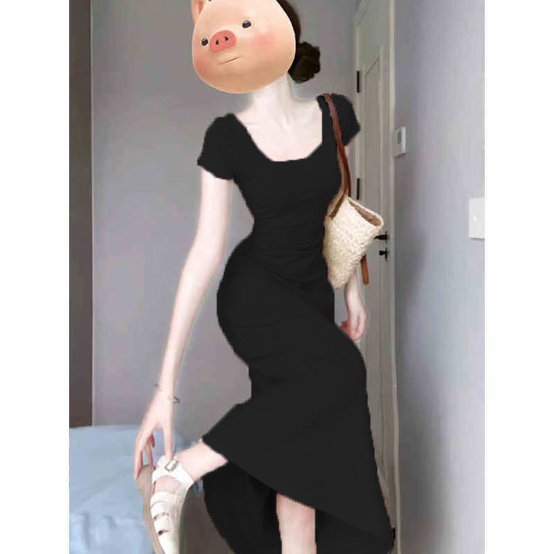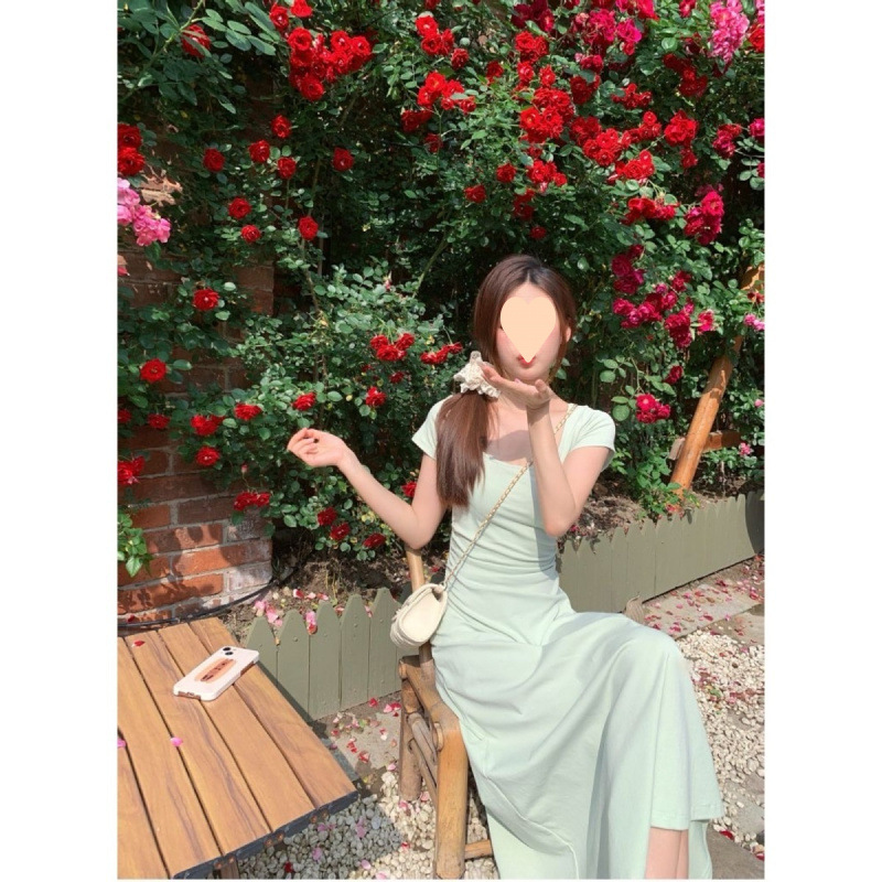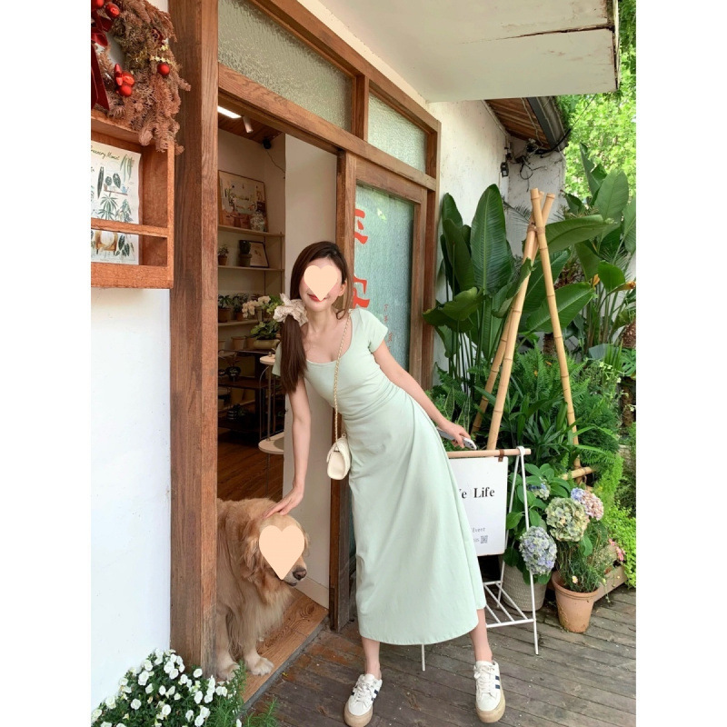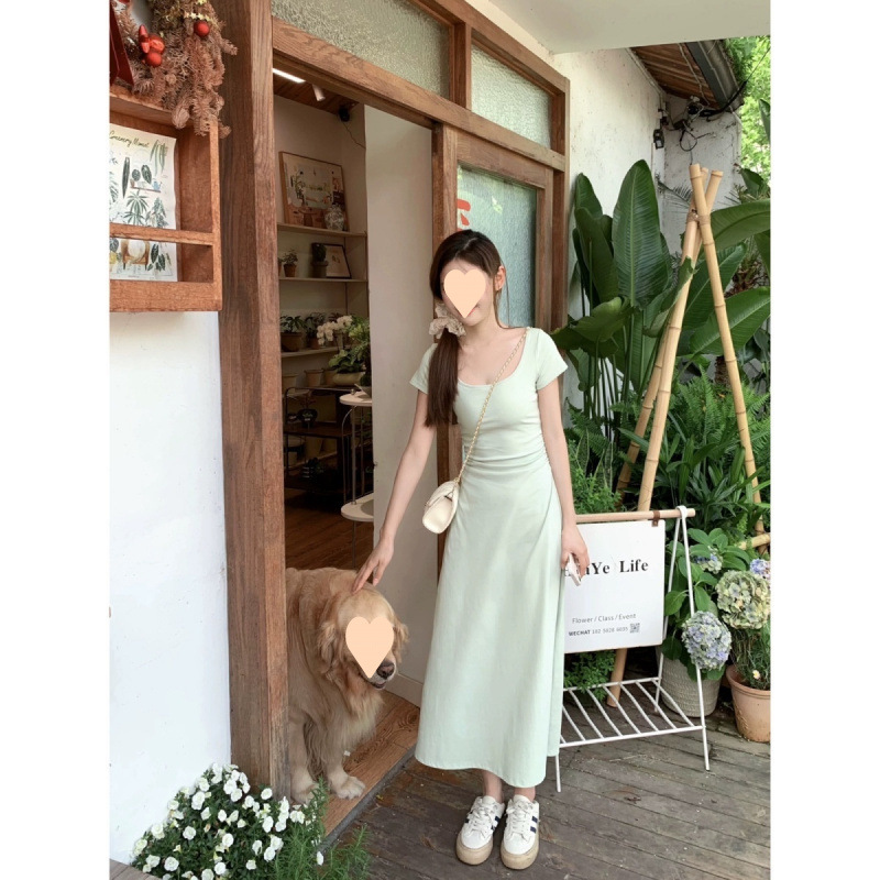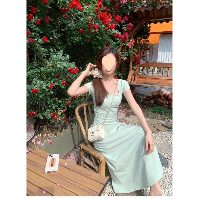 Женское платье с квадратным вырезом в французском стиле, зеленое, лето 2025, новинка, подчеркивающее талию, стройнящее, длинная юбка
