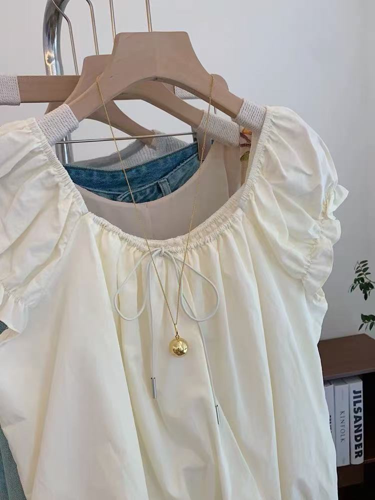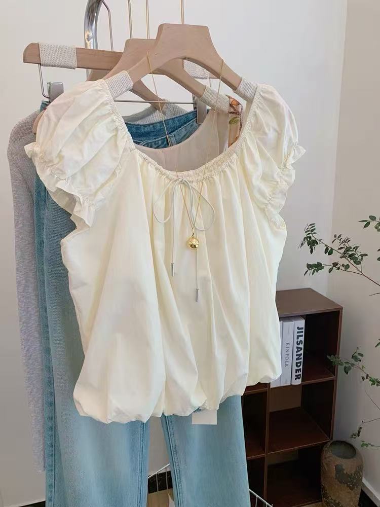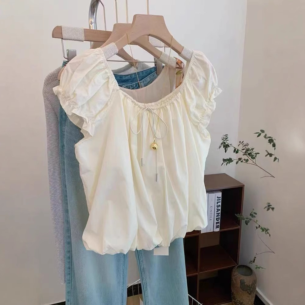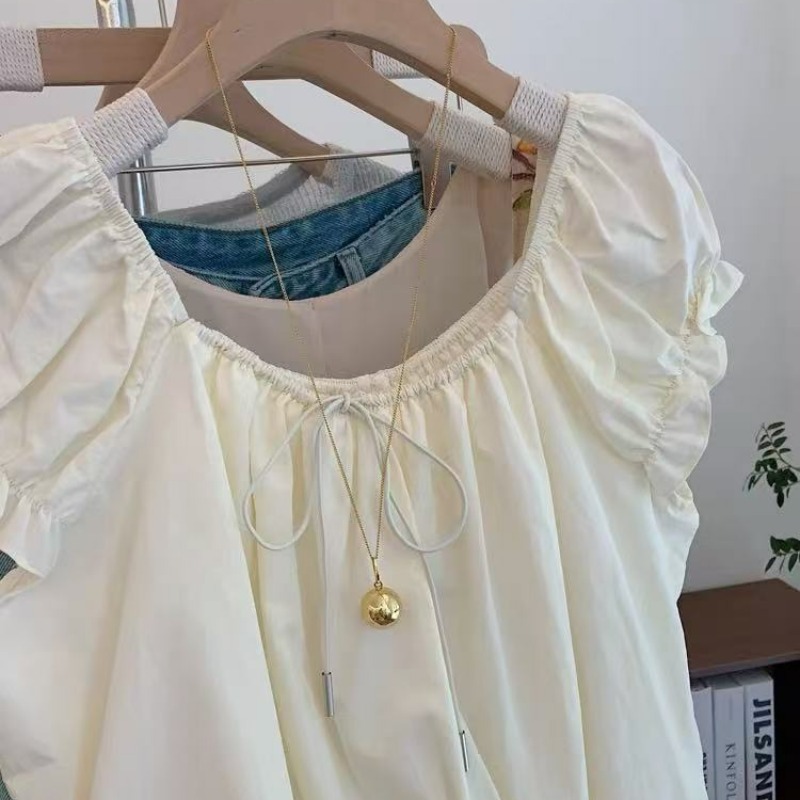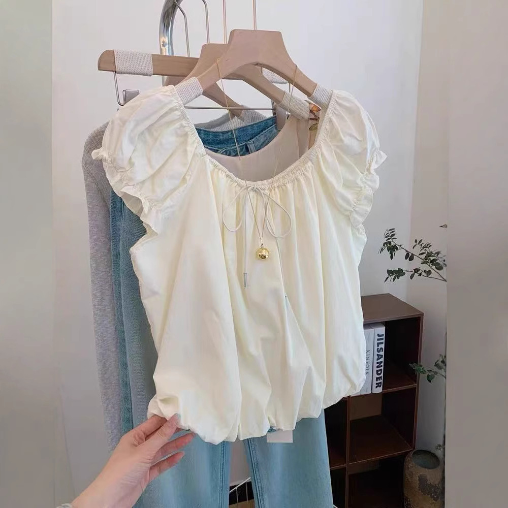 Женская рубашка с квадратным вырезом и короткими рукавами во французском стиле, дизайнерский топ с цветочным принтом, новая летняя кукольная блузка 2025 года.
