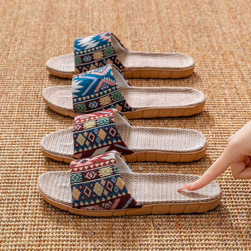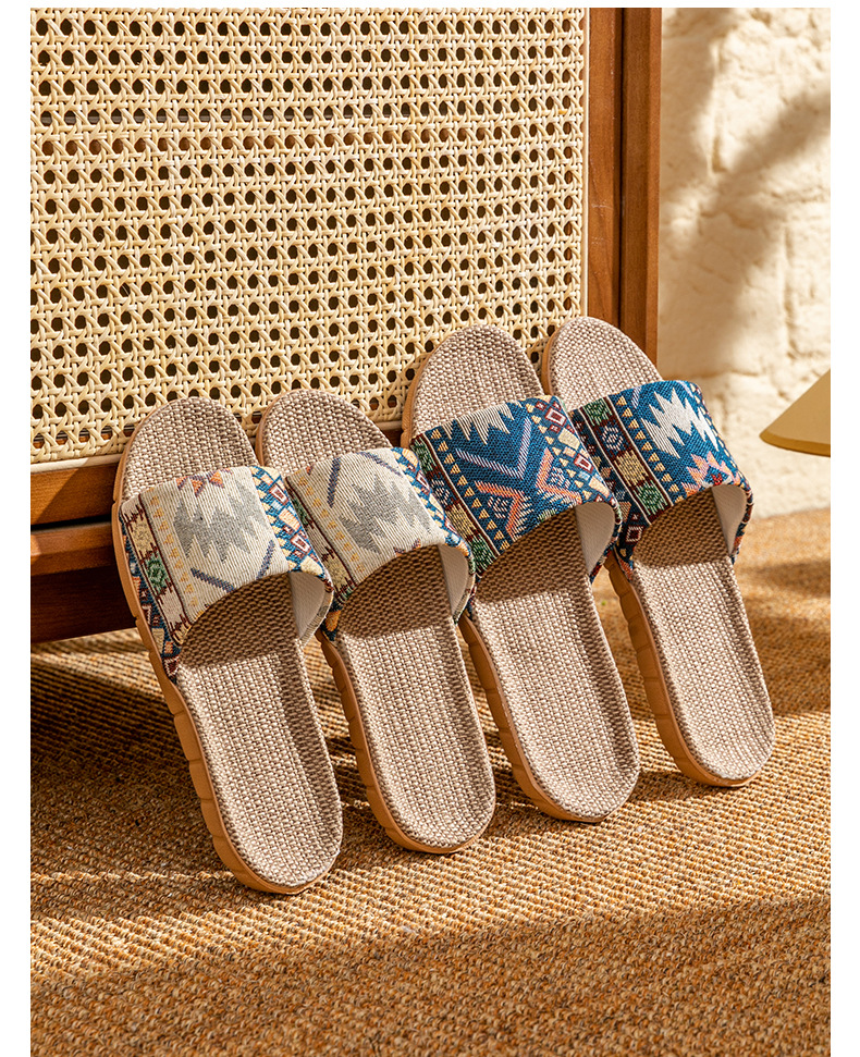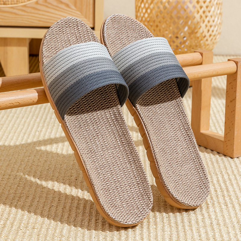 Льняные тапочки для женщин, круглогодичные домашние нескользящие мягкие подошвы, бесшумные, впитывающие пот, верхняя одежда для пар, мужские тапочки из хлопка и льна