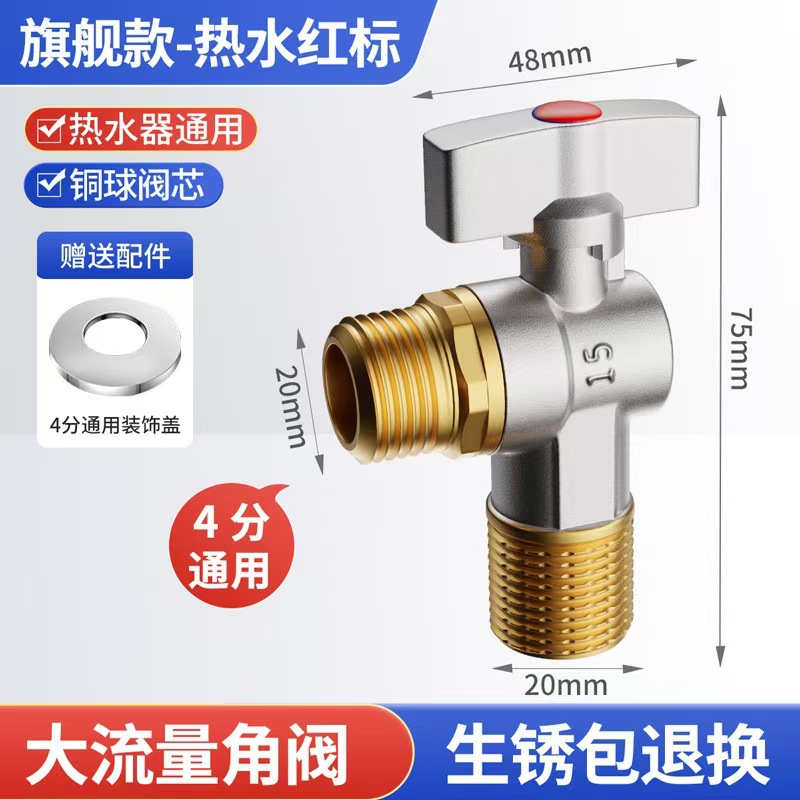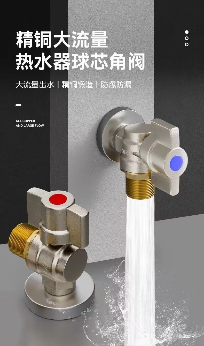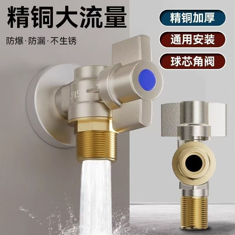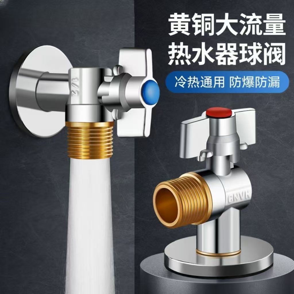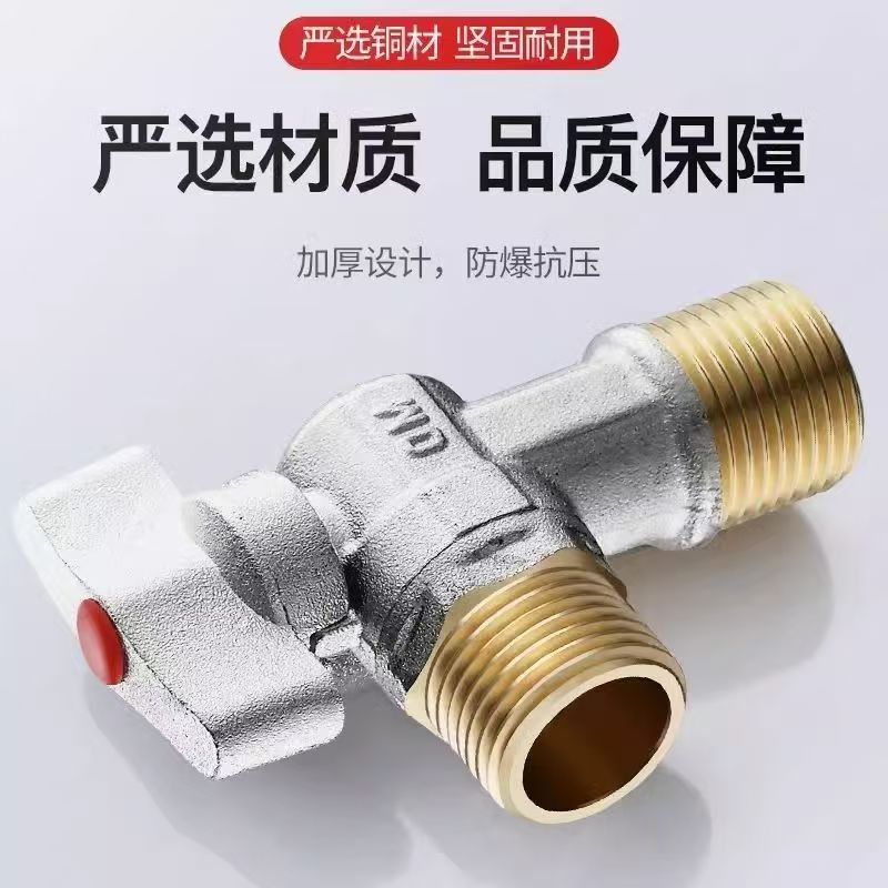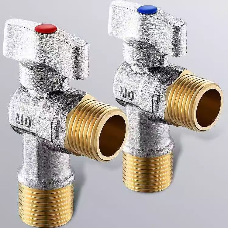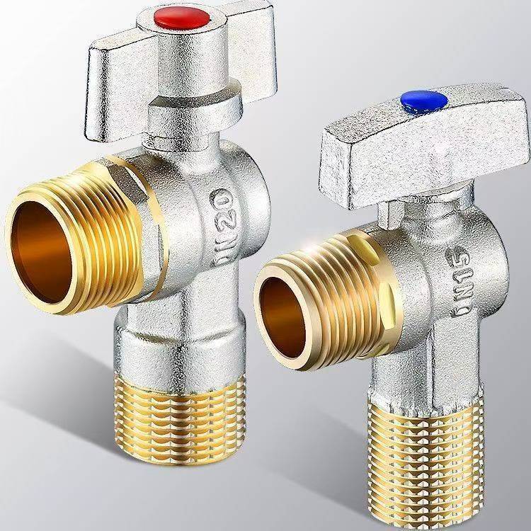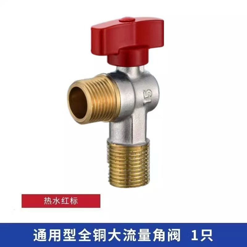 Угловой клапан полного потока с шаровым сердечником, полностью медный шаровой клапан для газового водонагревателя горячей и холодной воды, треугольный клапан, 1/2 дюйма.