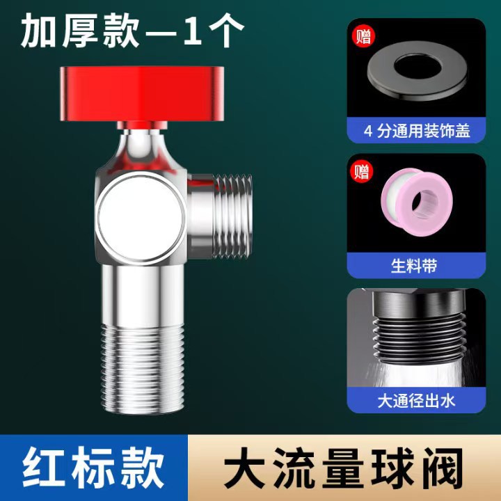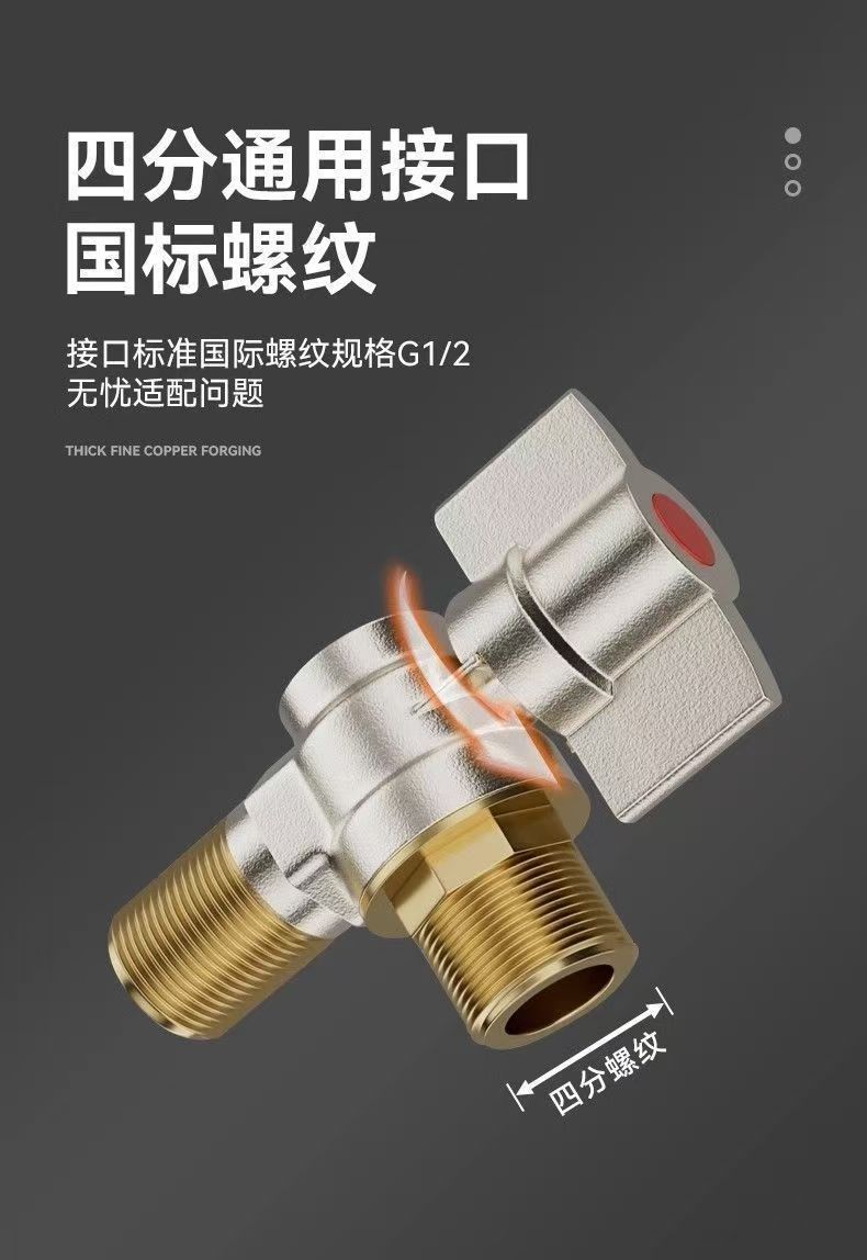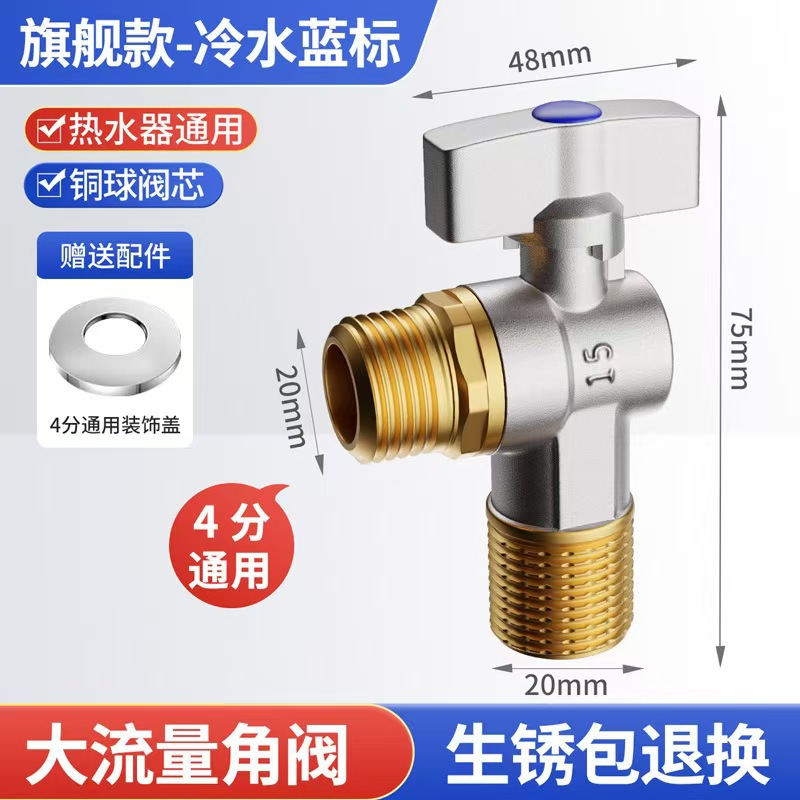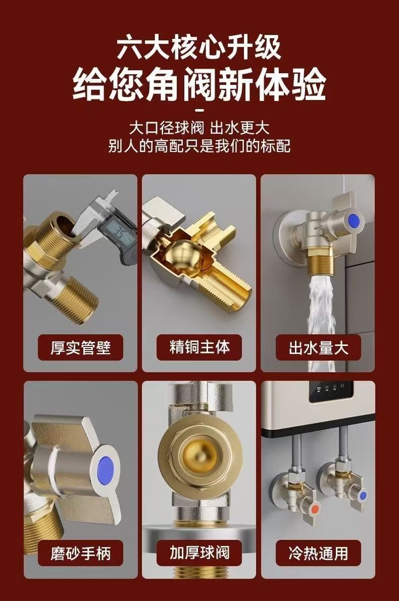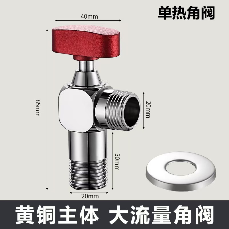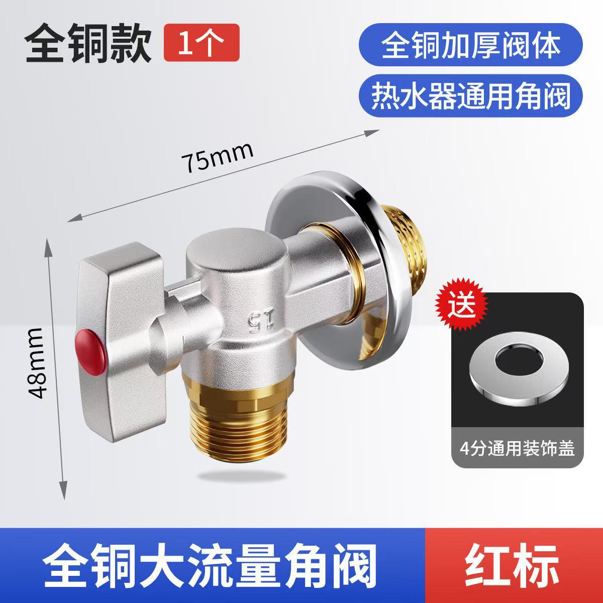 Угловой клапан полного потока с шаровым сердечником, полностью медный шаровой клапан для газового водонагревателя горячей и холодной воды, треугольный клапан, 1/2 дюйма.