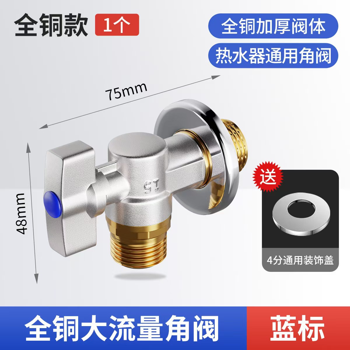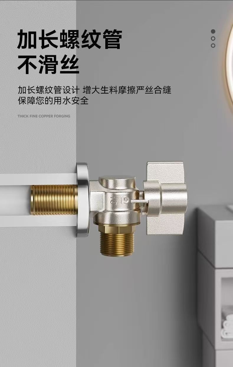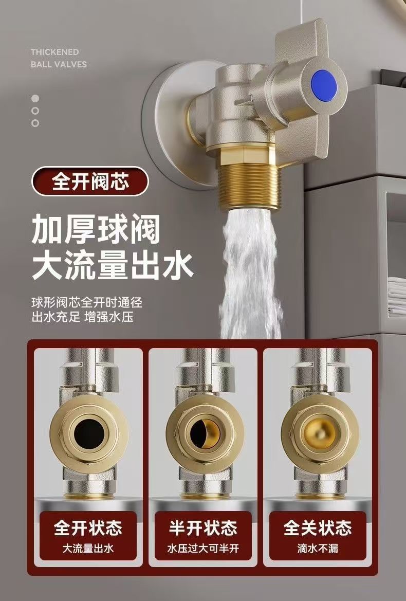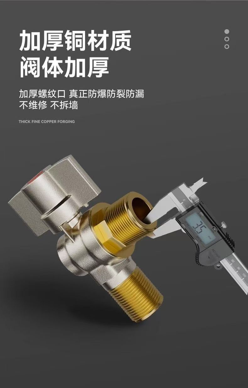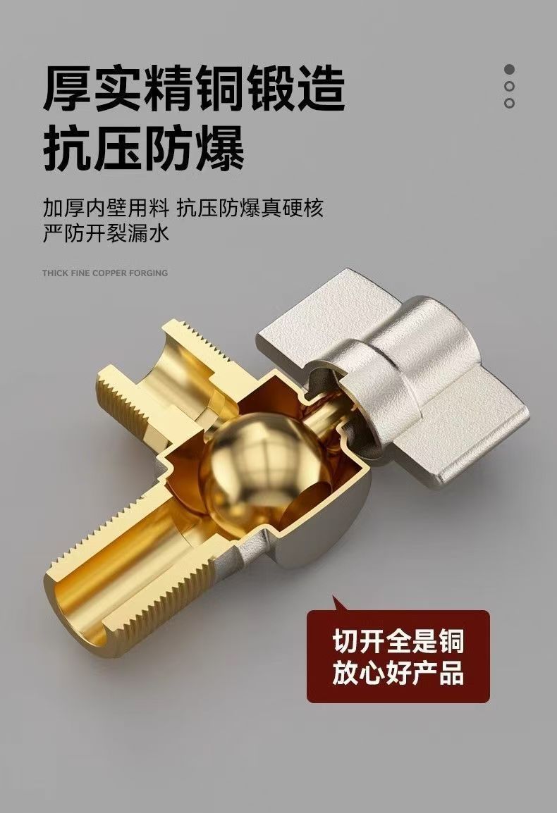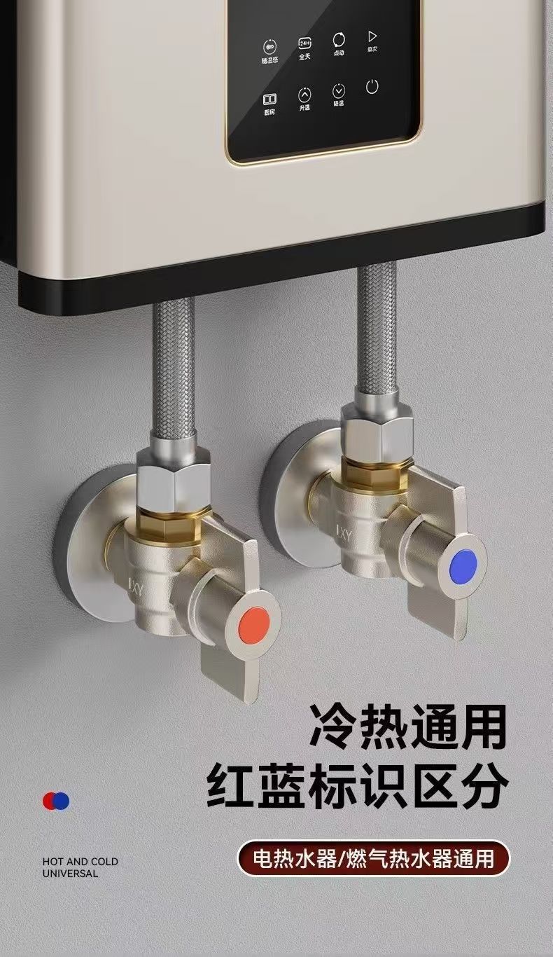 Угловой клапан полного потока с шаровым сердечником, полностью медный шаровой клапан для газового водонагревателя горячей и холодной воды, треугольный клапан, 1/2 дюйма.