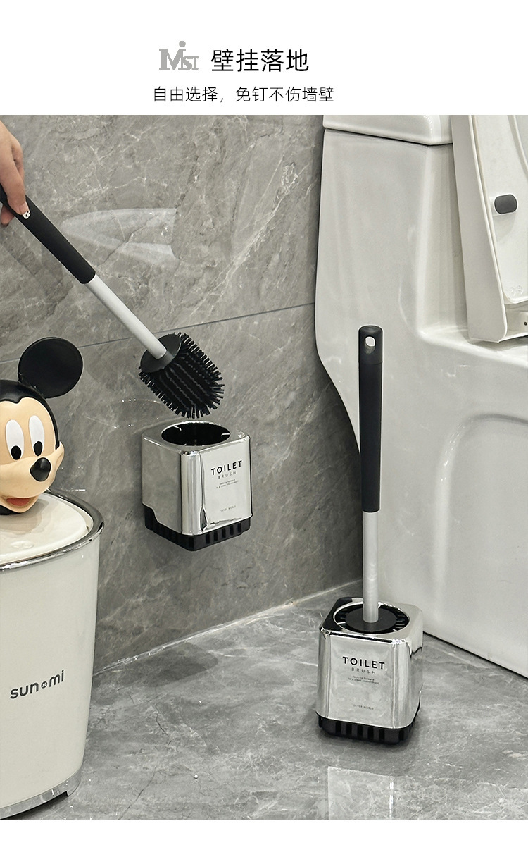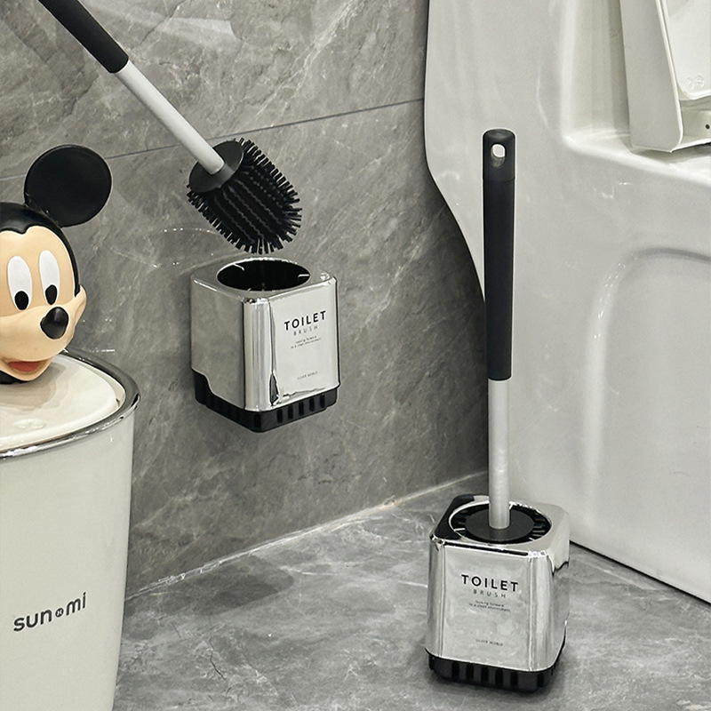 Легкая роскошная серебряная ершик для унитаза может быть установлена на стене или на полу.