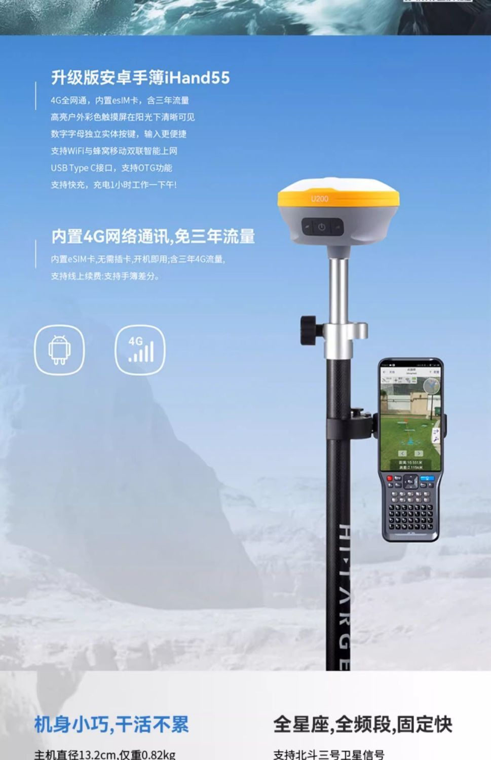 Геодезический прибор HuaTe RTK GPS для инженерно-геодезических работ, высокоточного позиционирования, визуального проектирования и измерения площади.