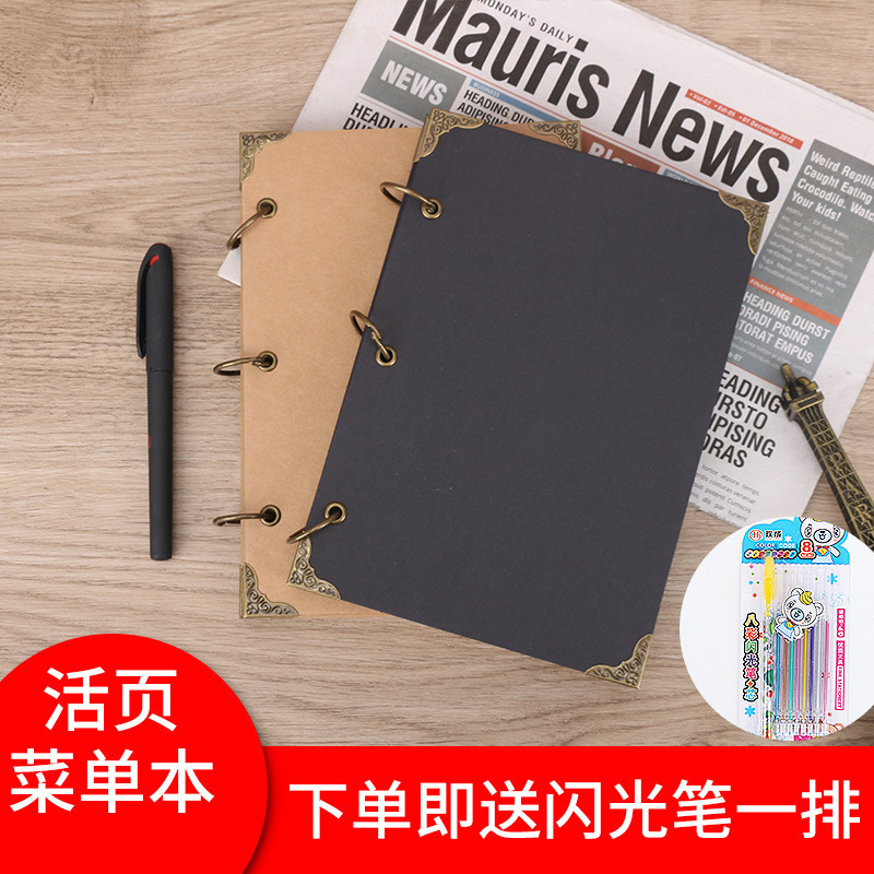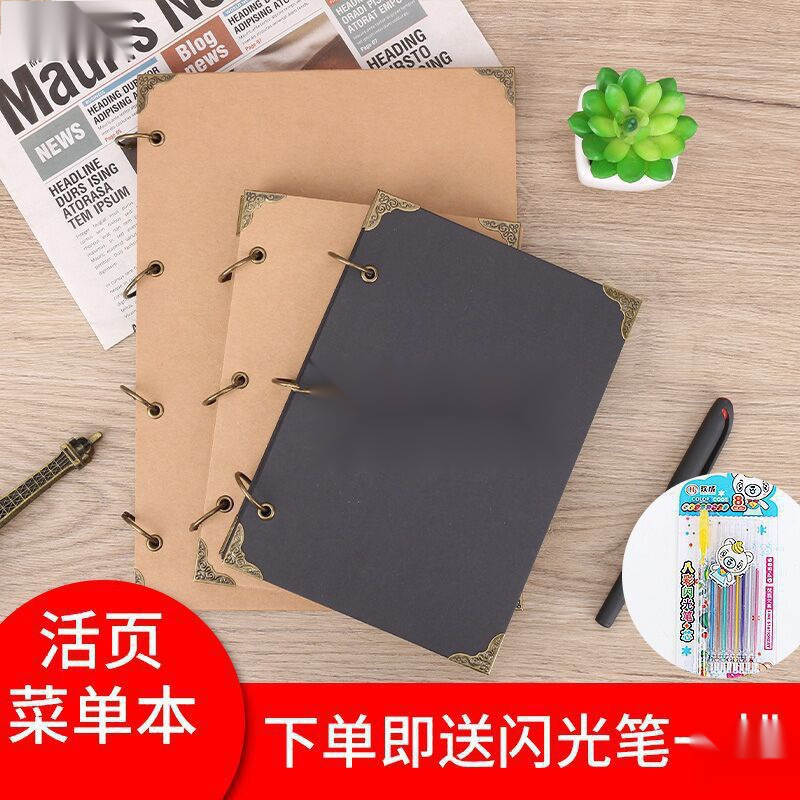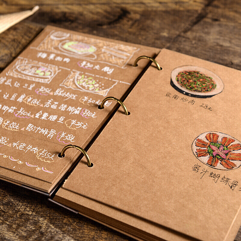 Книга меню из крафт-бумаги, ручная роспись меню, книга с черными карточками, семейная рукописная книга рецептов, пустая книга с ручной росписью
