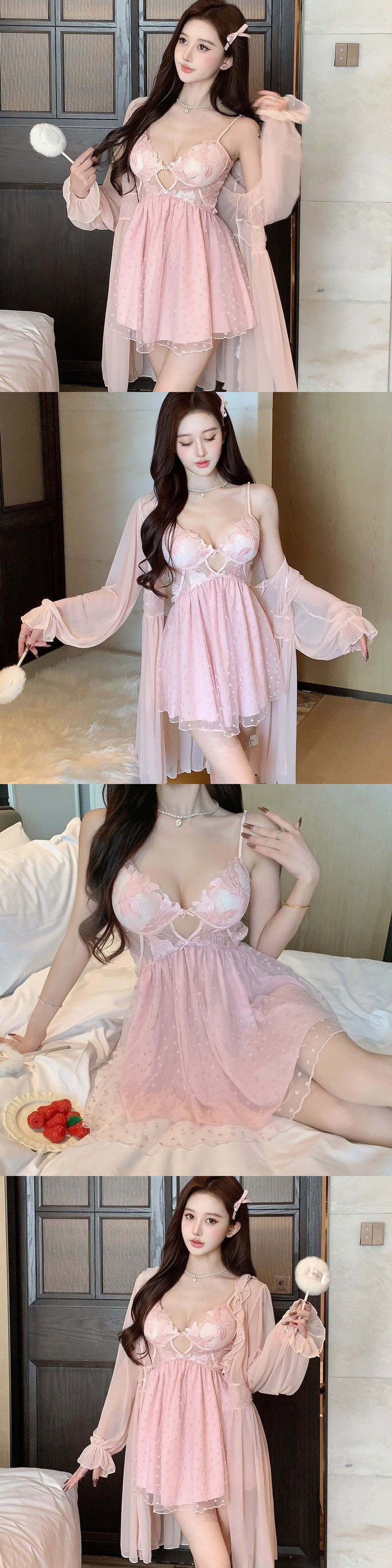 Ночная рубашка + халат на подтяжках Narcissus розового цвета; Цельная ночная рубашка на подтяжках Narcissus розового цвета; Цельный жакет Narcissus розового цвета