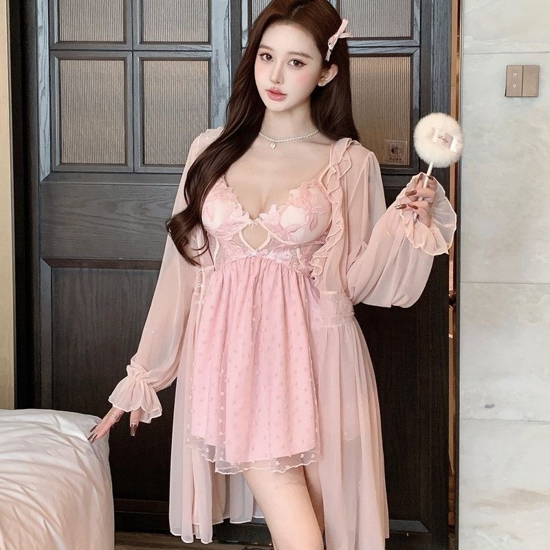 2025 новая летняя тонкая сетчатая юбка на подтяжках с подушечками для груди, сексуальная и высококачественная ночная рубашка с развевающимися сказочными крылышками
