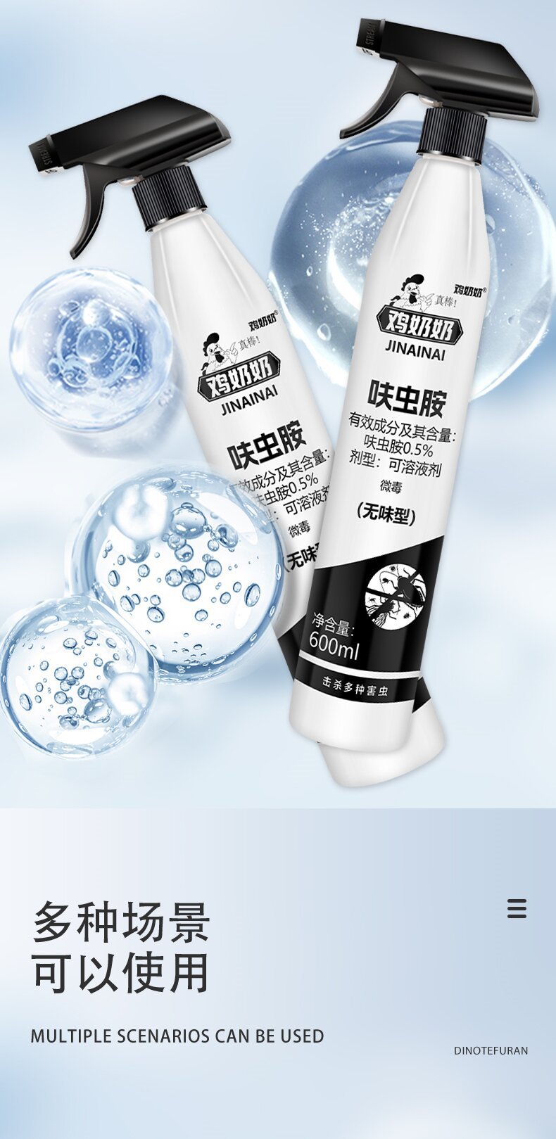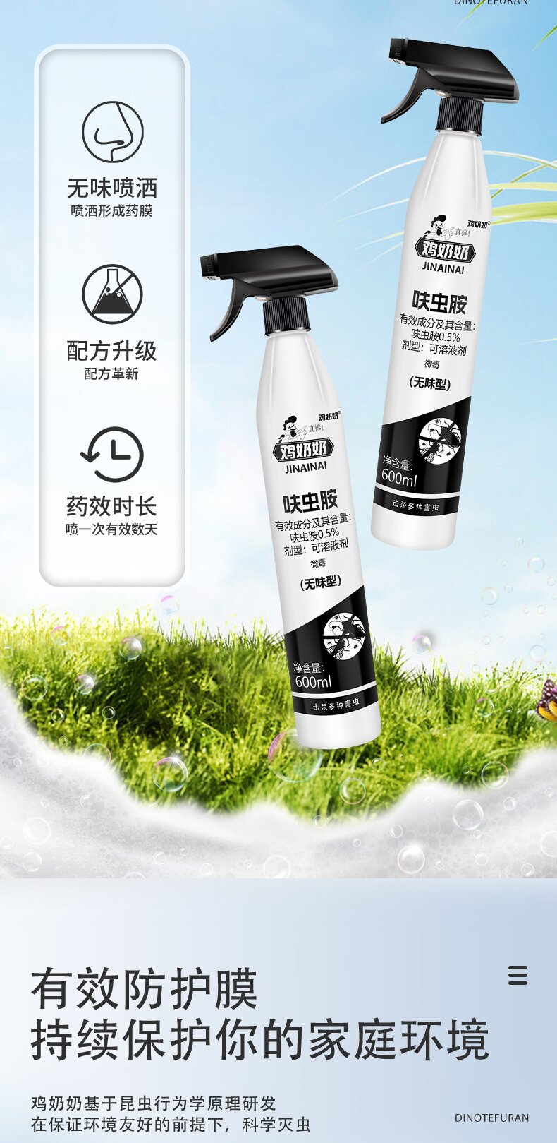Спрей-инсектицид для кожи с куриной молочной аминкой, без цвета и запаха, в бутылке с насадкой.