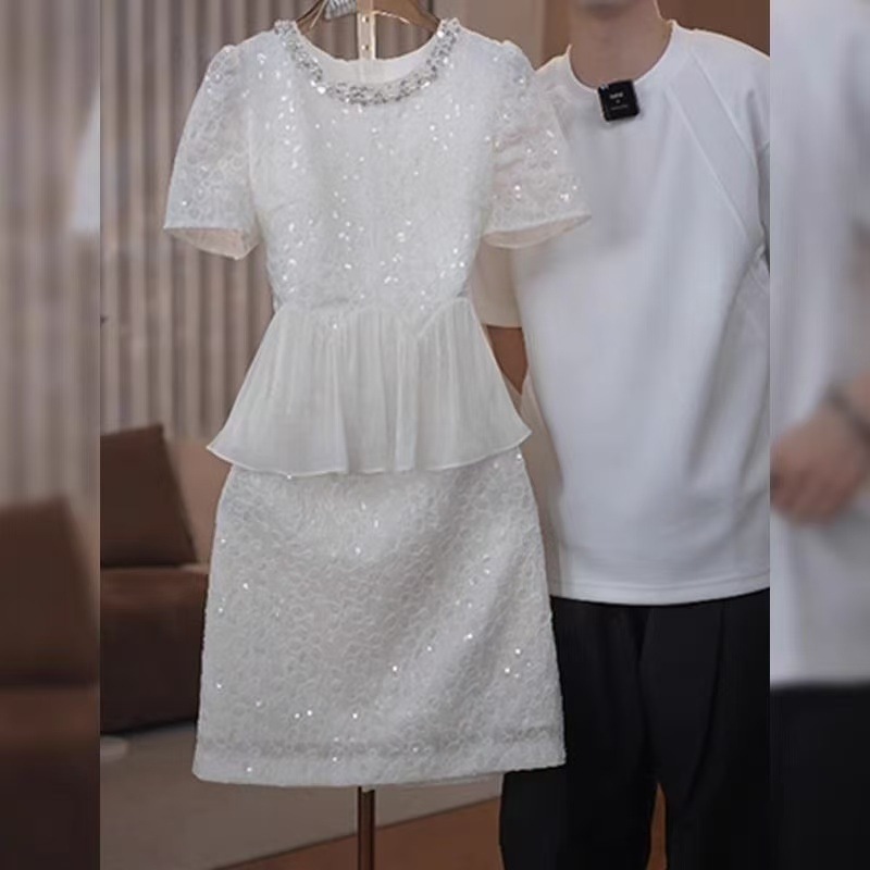 Летнее платье 2025 года, элегантное, в стиле лёгкой роскоши, с пайетками, для светских львиц, имитация двухслойного платья, короткая юбка, для женщин.