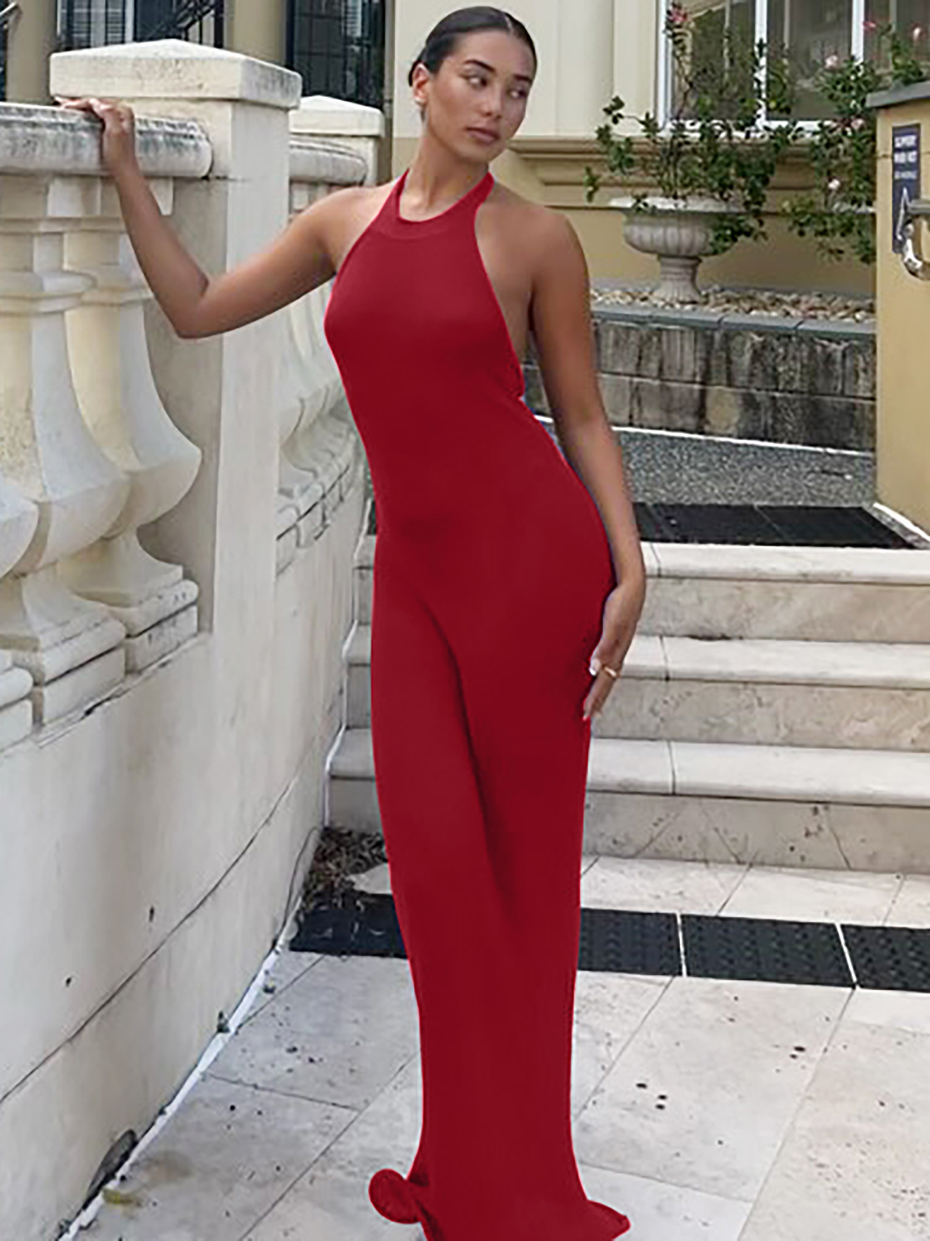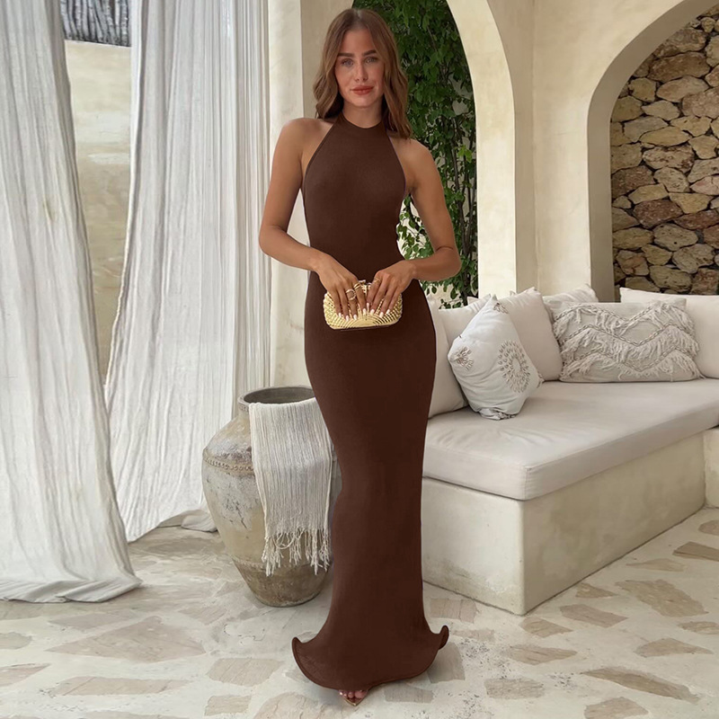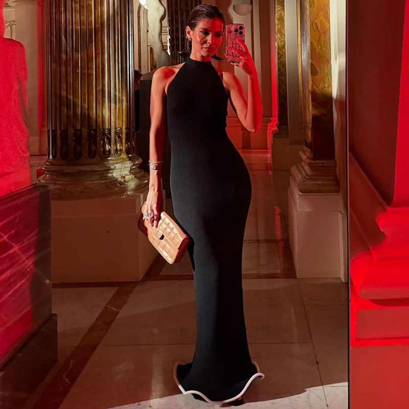 Летние платья оптом 2025 года: европейские и американские модели, сексуальные, без спинки, элегантные, без рукавов, с халтером и юбкой-клеш.