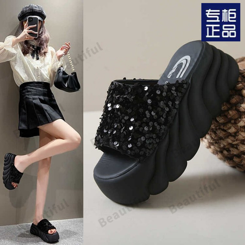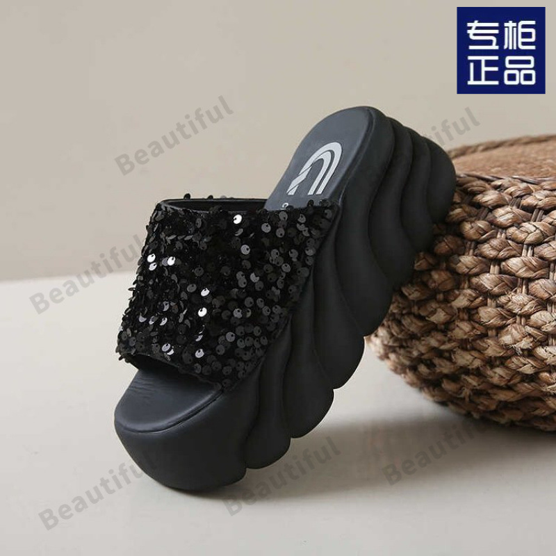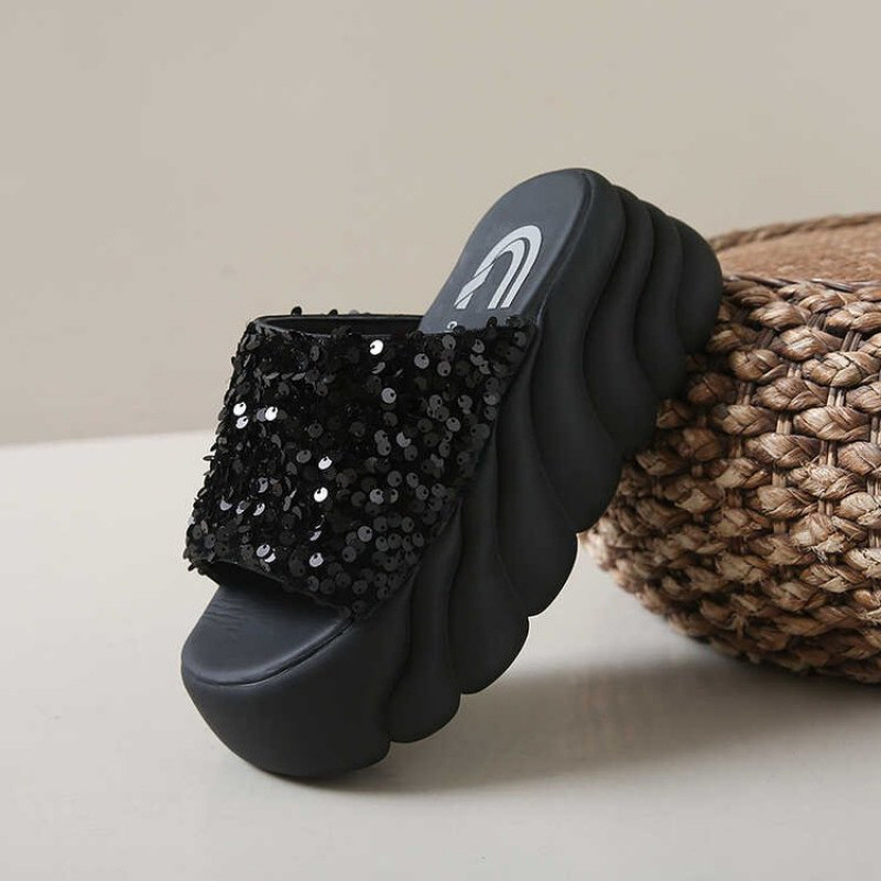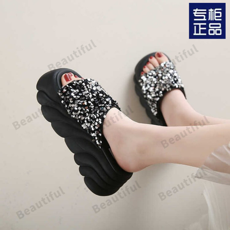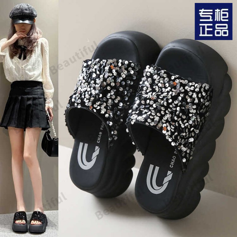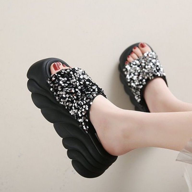 Женские сандалии на толстой подошве и полутапочки для лета, новые женские тапочки на платформе с блестками.