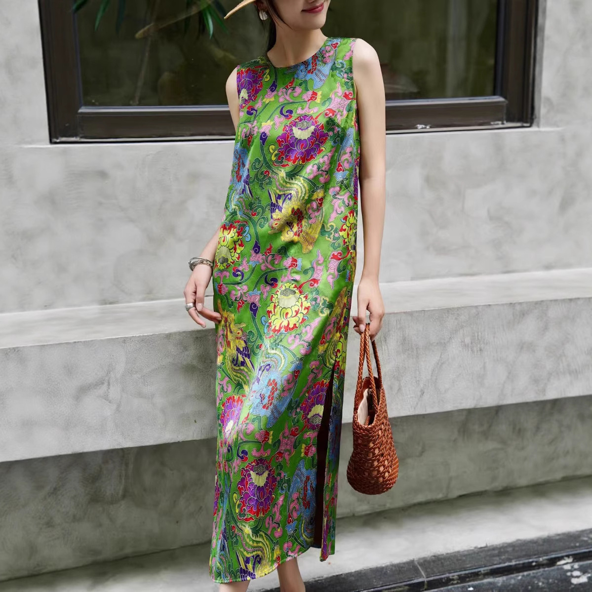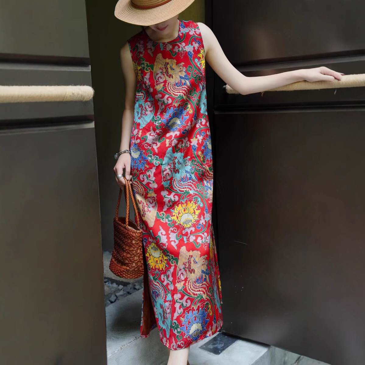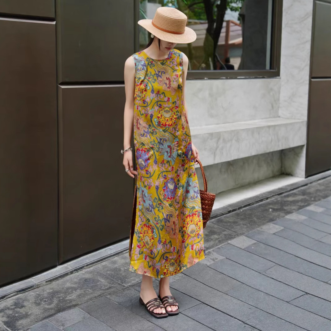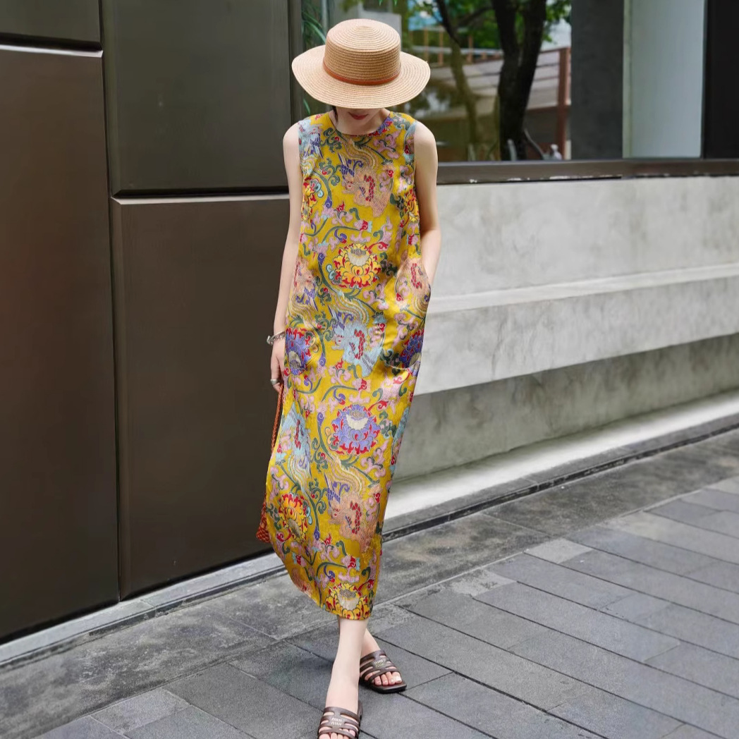 Летнее платье-жилет в китайском стиле ретро с принтом, элегантное длинное платье для светских львиц, 2025 г.