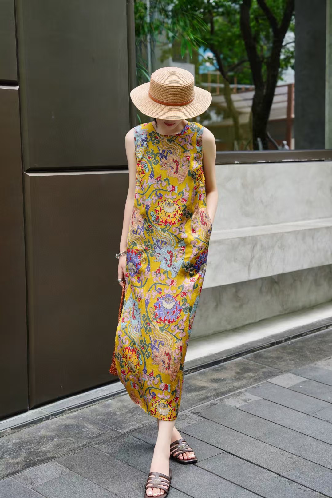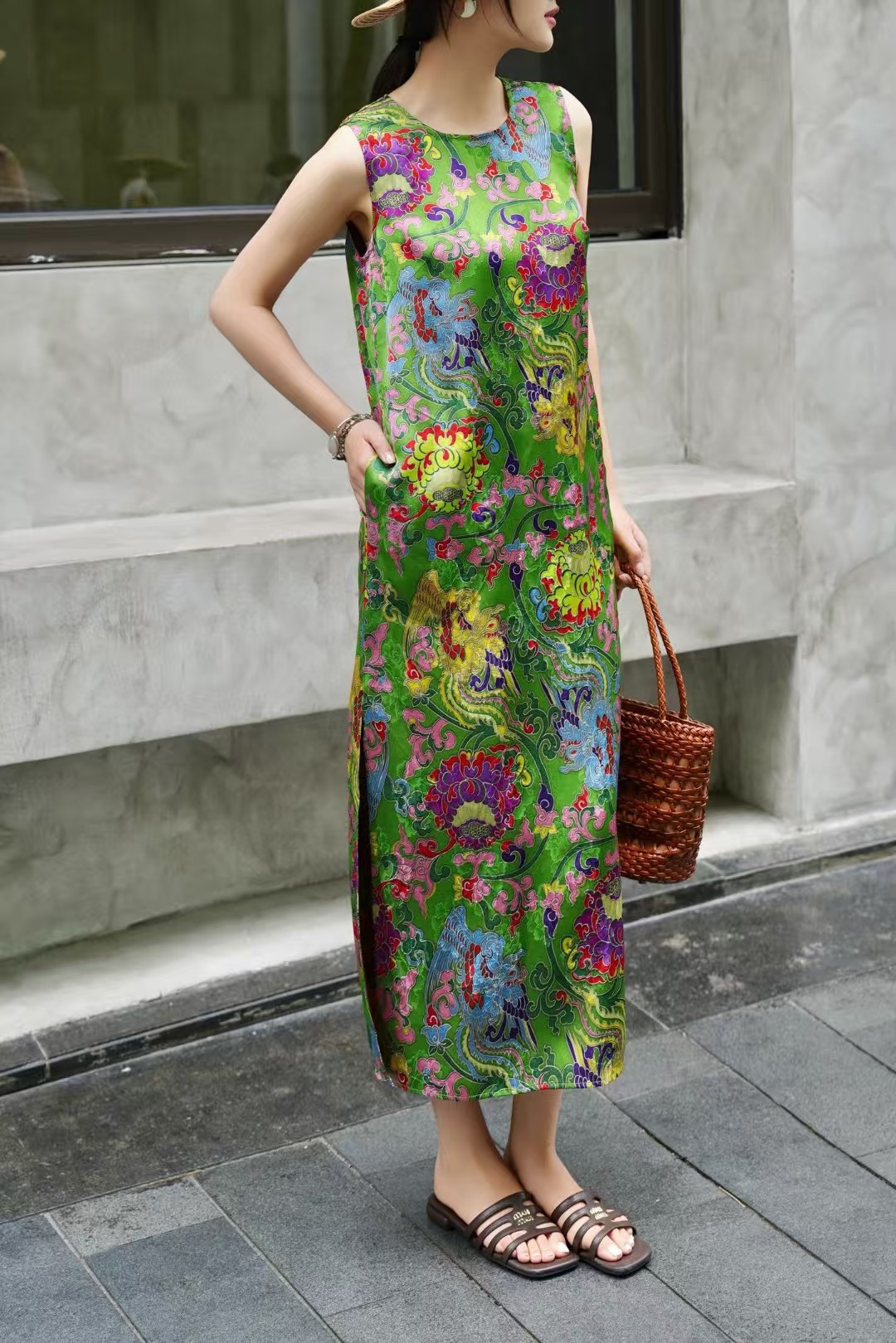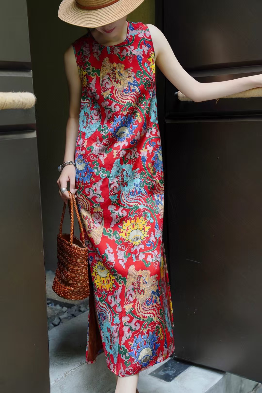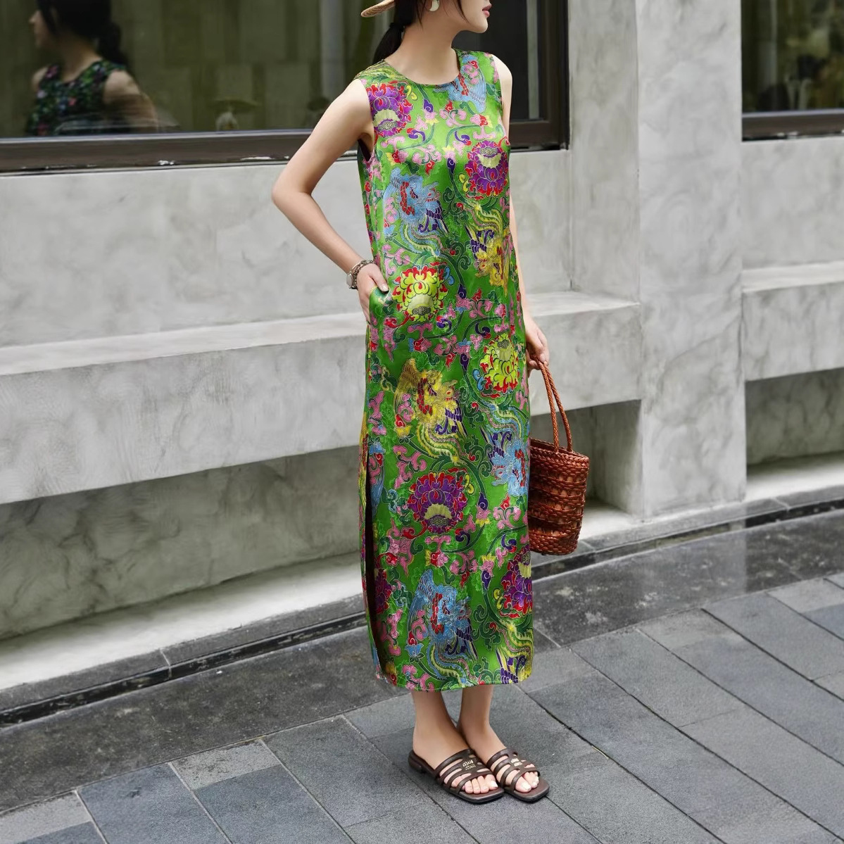 Летнее платье-жилет в китайском стиле ретро с принтом, элегантное длинное платье для светских львиц, 2025 г.
