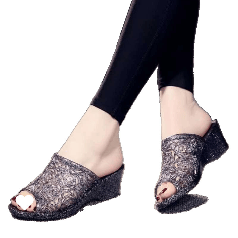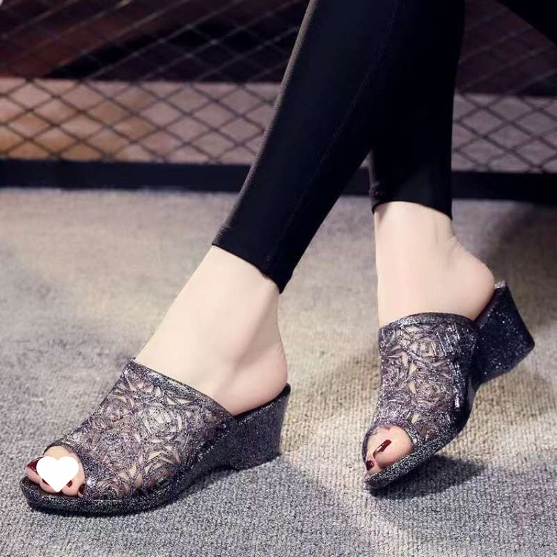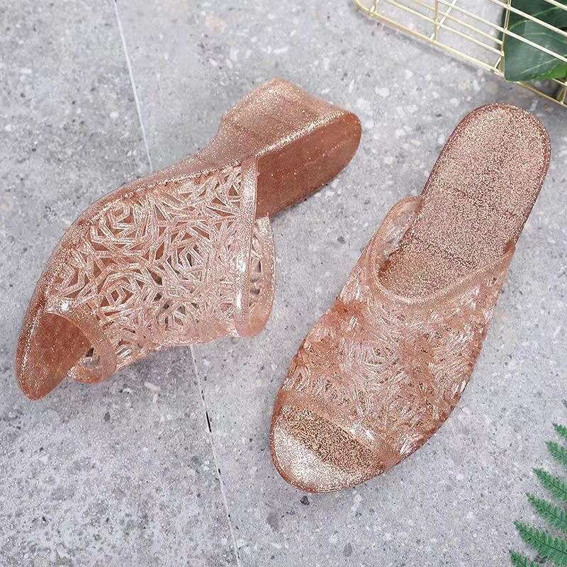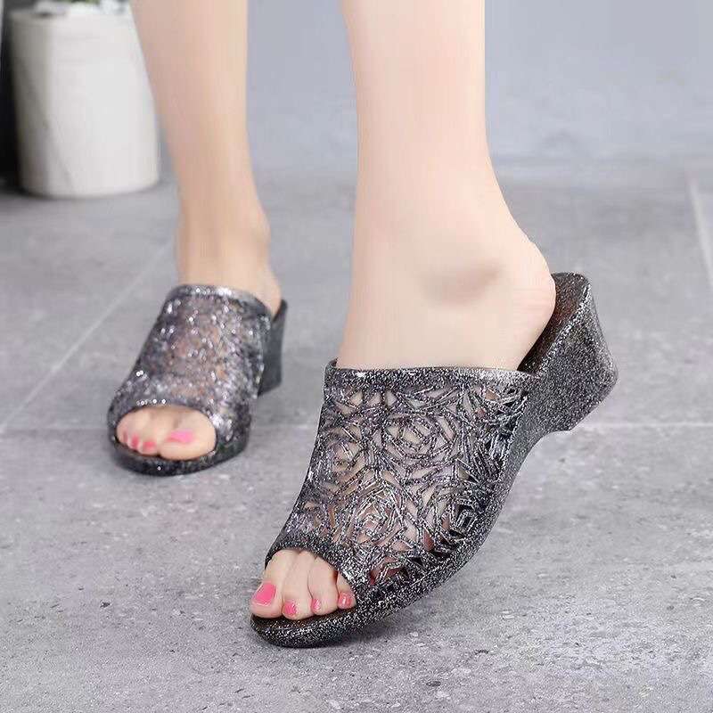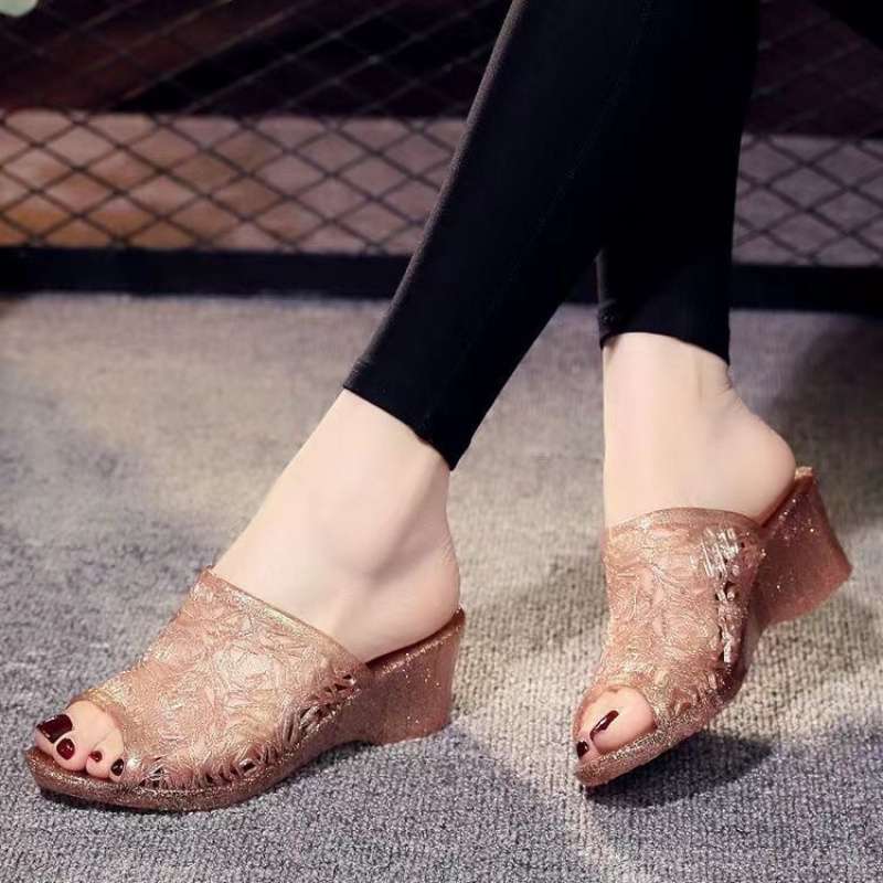 Новые пластиковые клиновидные тапочки с кристаллами для женщин, летние сандалии на высоком каблуке для мам, нескользящие, антизапаховые, для дома и улицы, женская обувь