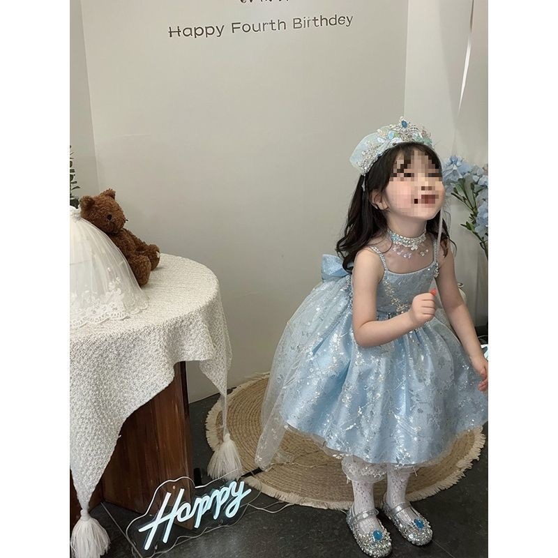 2025 летнее платье Эльзы на подтяжках для девочек, детское платье принцессы на день рождения, детское пышное платье для выступлений