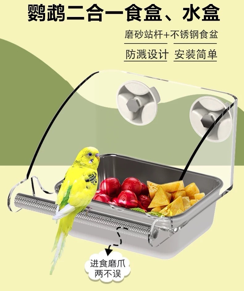 Кормушка для попугаев с защитой от брызг и кормушкой внутри, подставка из нержавеющей стали с черным фениксом и пионом, миска для кормления птиц