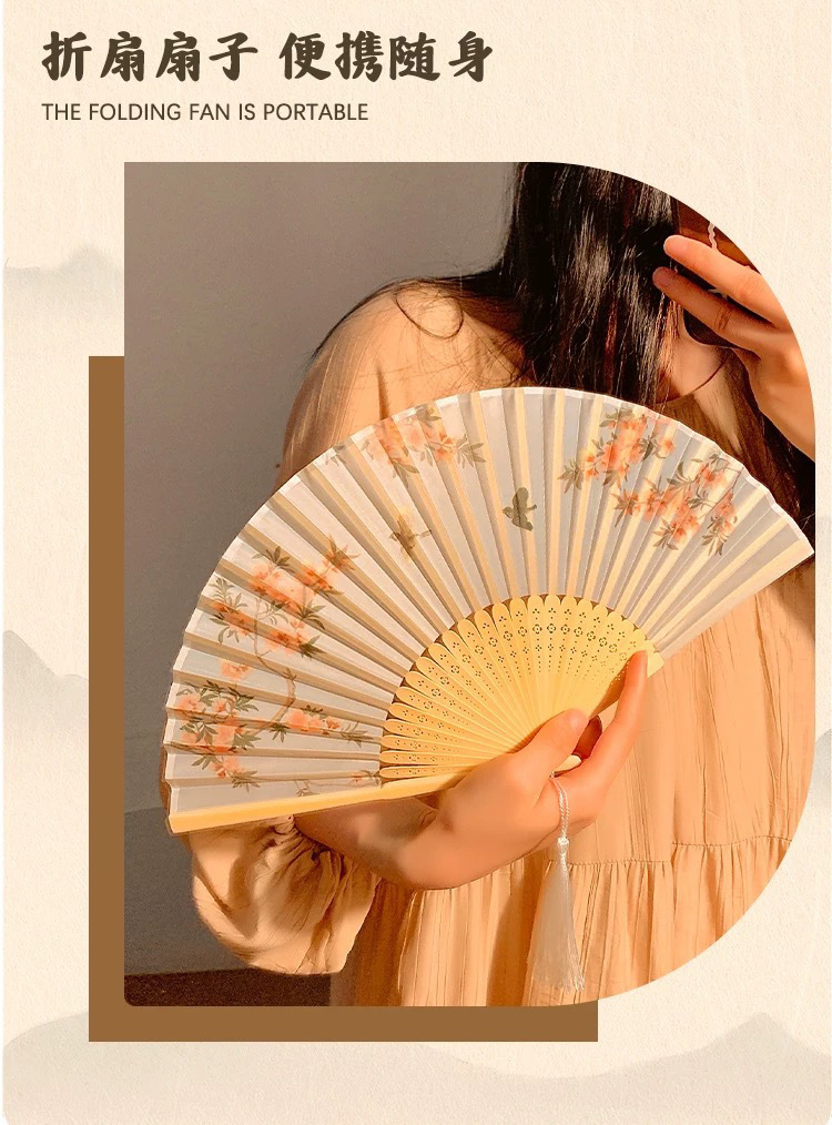 Новый складной веер для женщин в древнем стиле в китайском стиле, подходящий для лета, фотографии традиционной китайской одежды, портативный складной веер с высокой эстетической ценностью.