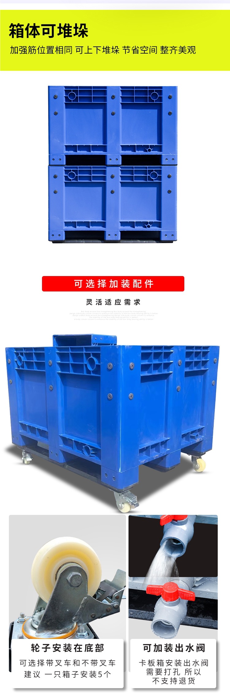 600-литровый утолщенный пластиковый поддонный ящик с крышкой, который можно перемещать с помощью вилочного погрузчика, переворачиваемый закрытый поддонный ящик, поддонный ящик для отходов с колесами.