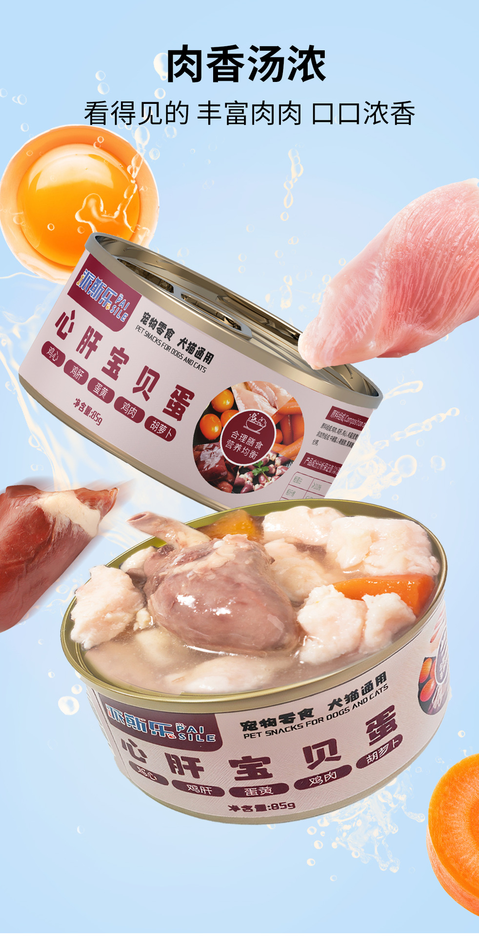 Paisle Pet Snacks Консервированные детские яйца с сердцем и печенью для собак и кошек, нейтральные, 85 г