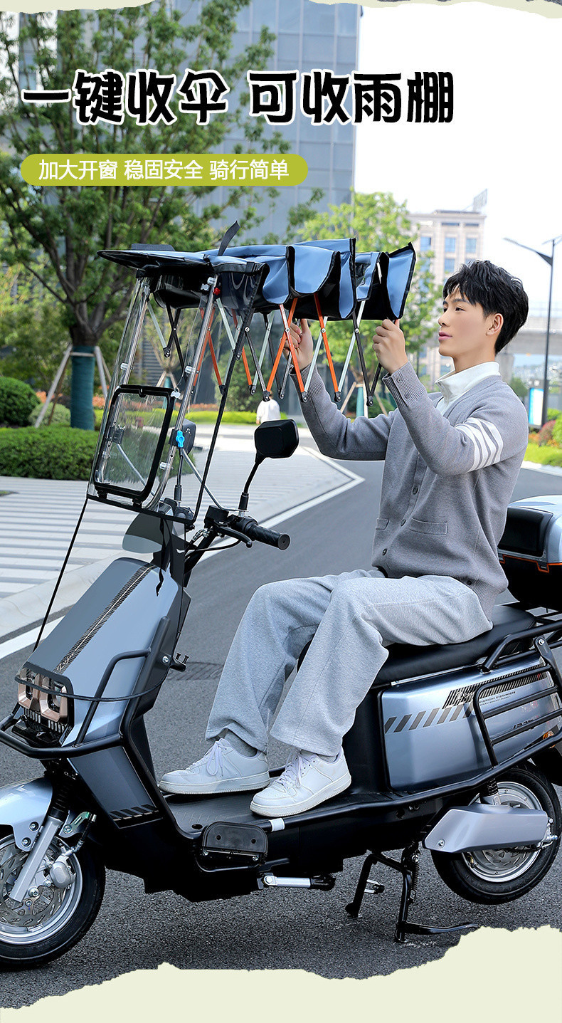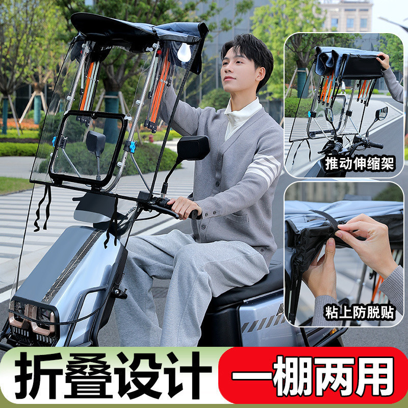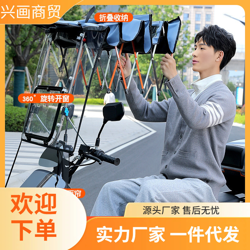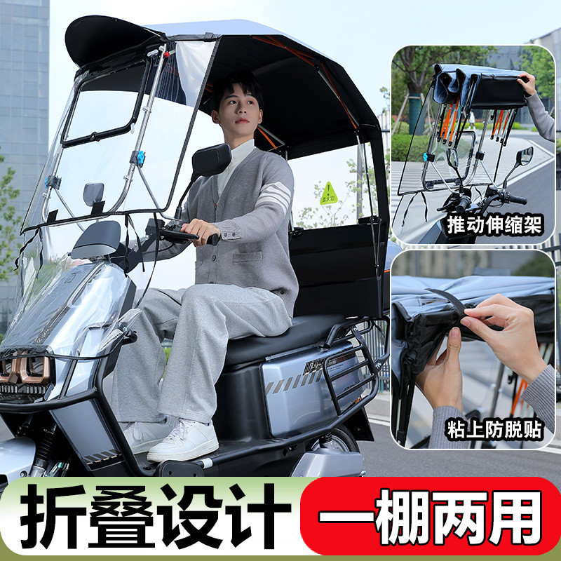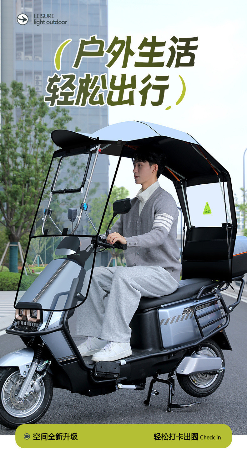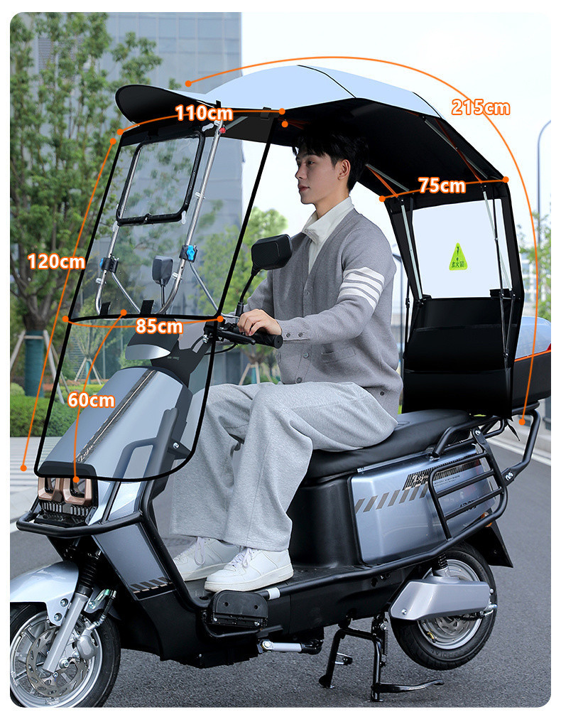 Новый складной и съемный навес для электромобиля, велосипеда, мотоцикла с защитой от солнца и дождя, с аккумулятором для хранения.