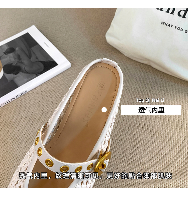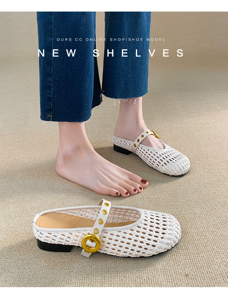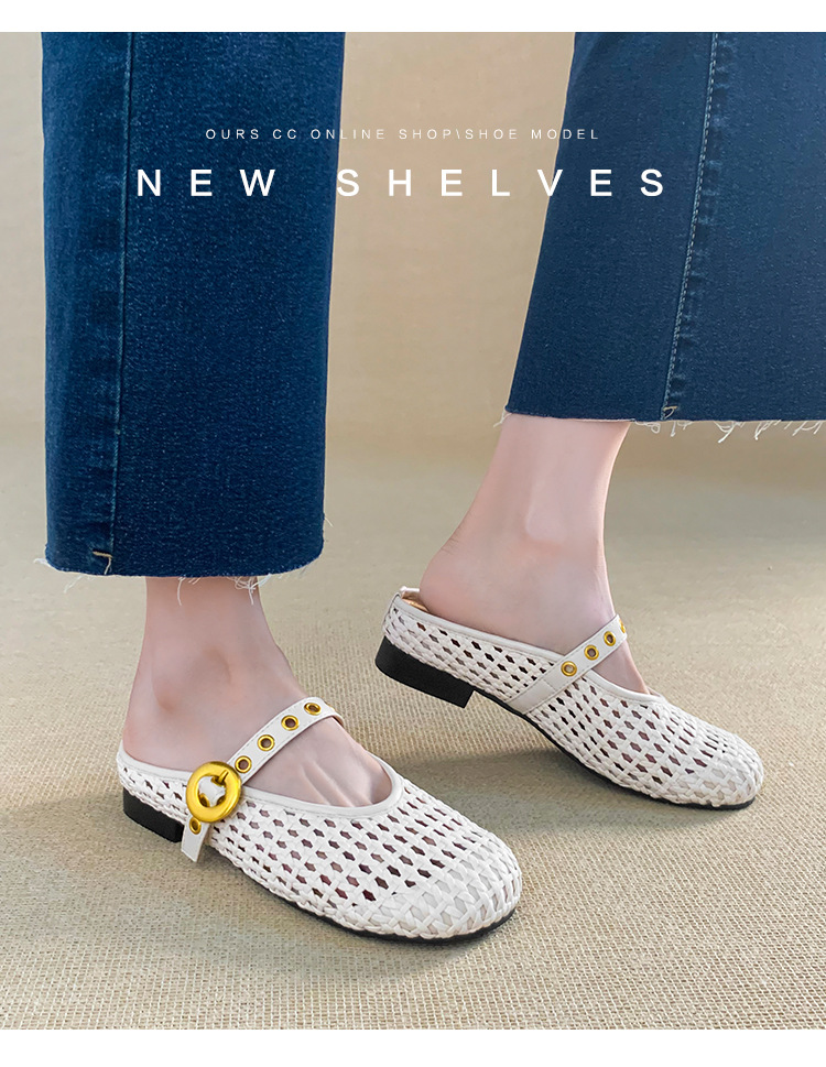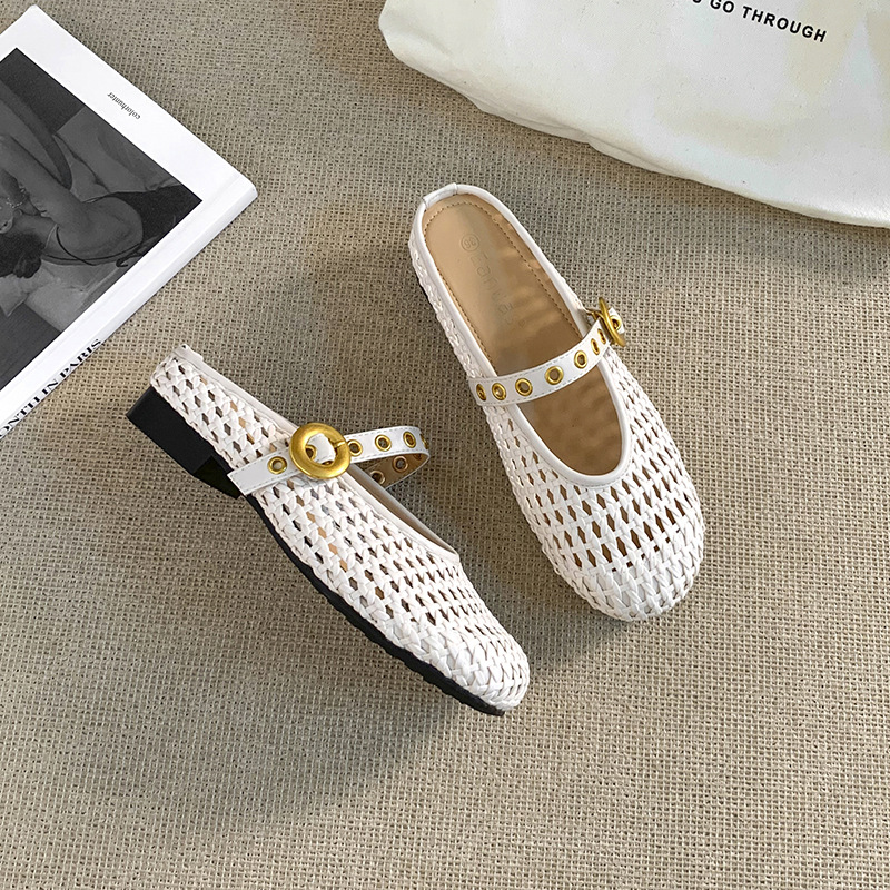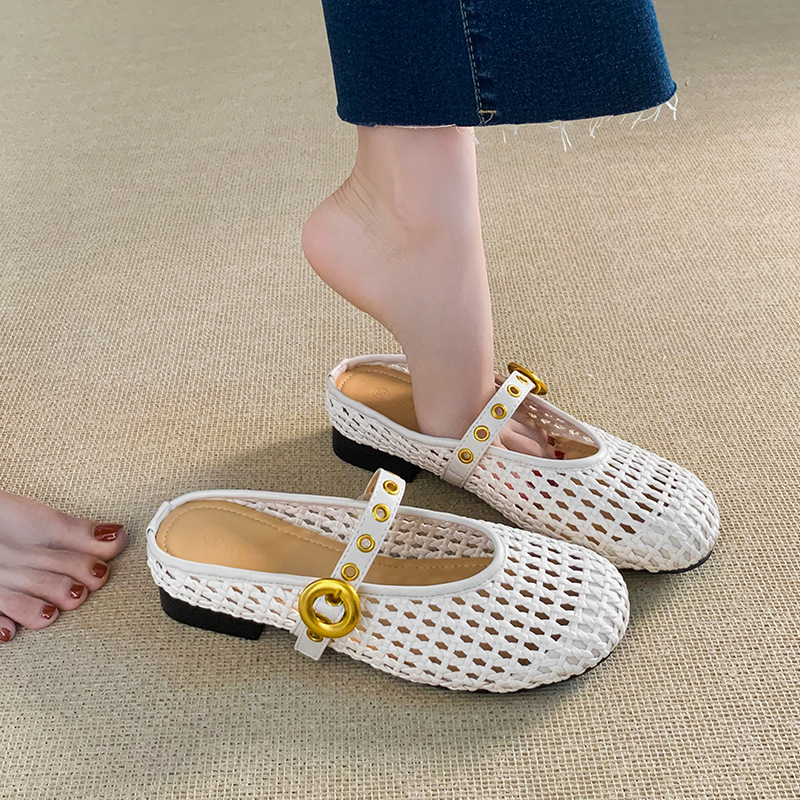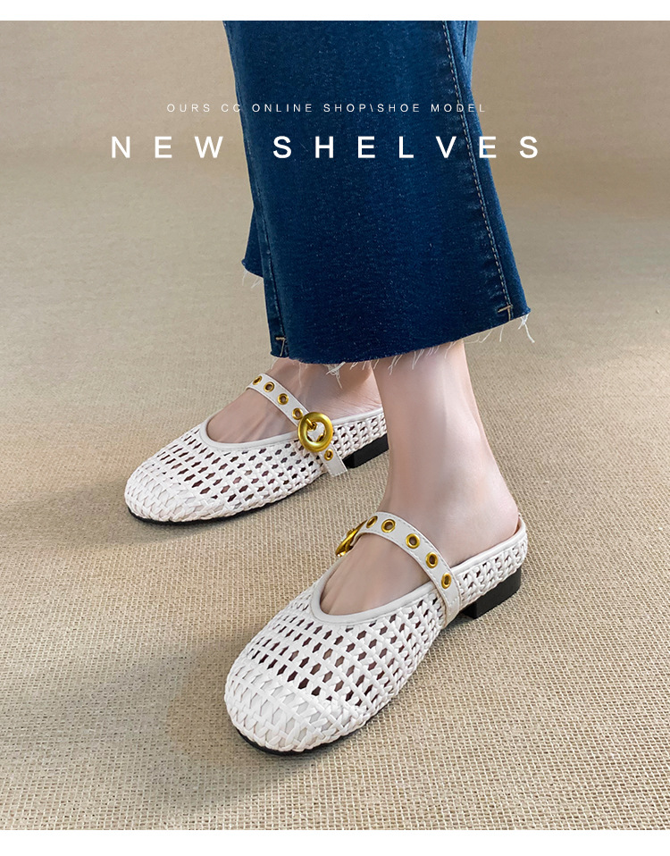 Женские полусабо в ретро стиле с вырезанным носком, новая модель 2025 года, удобные и лёгкие, модные однотонные тапочки с металлической пряжкой