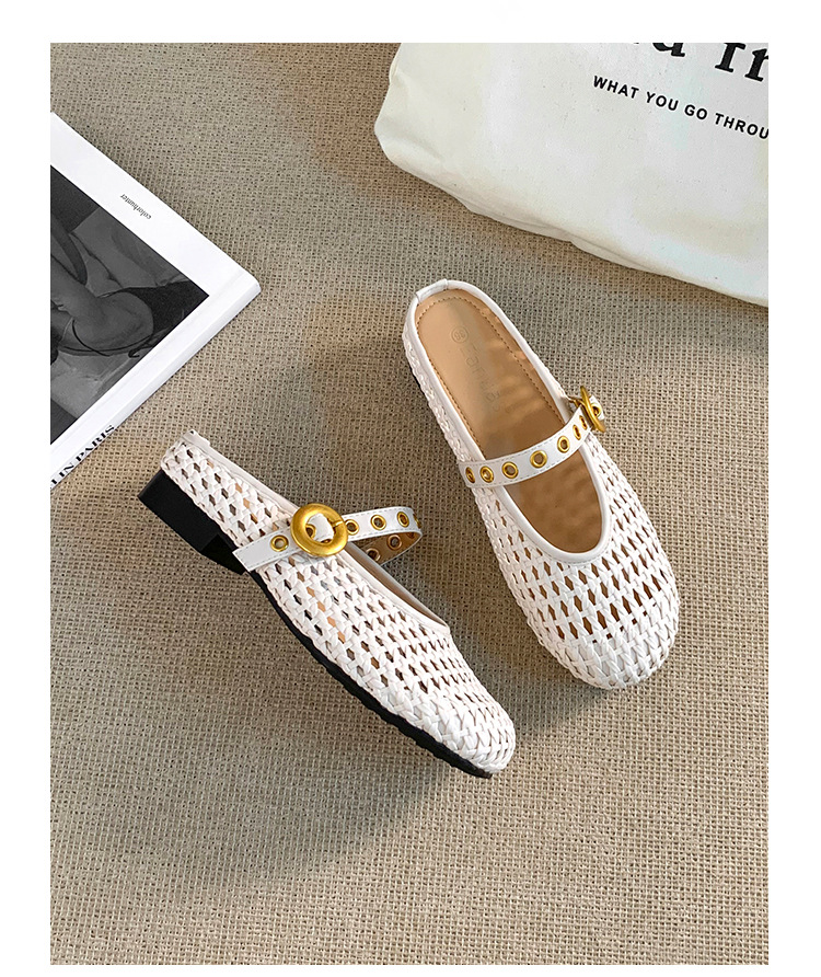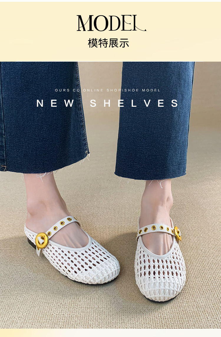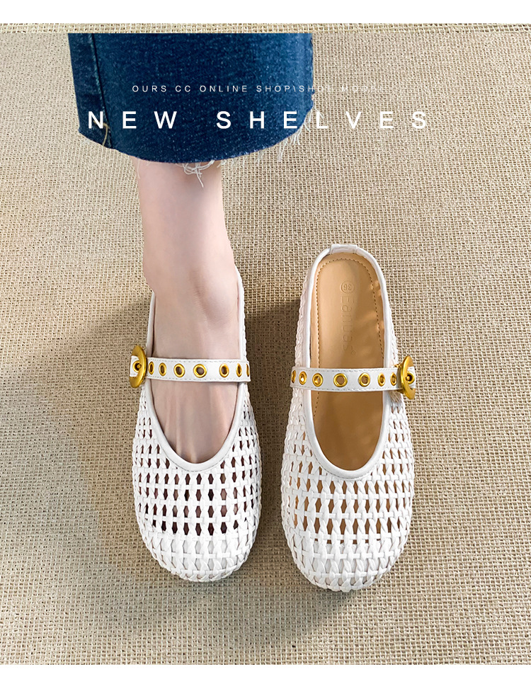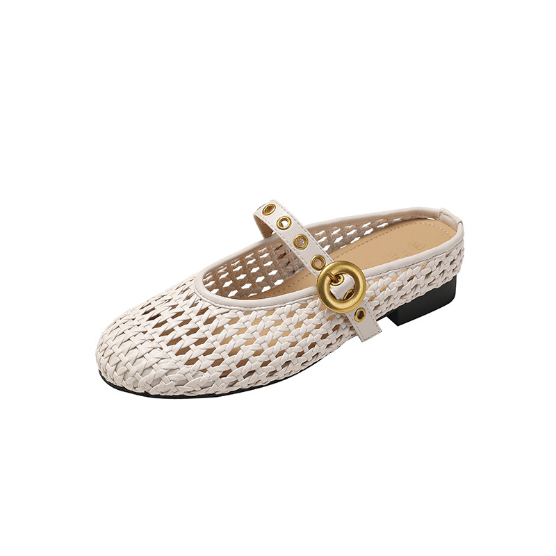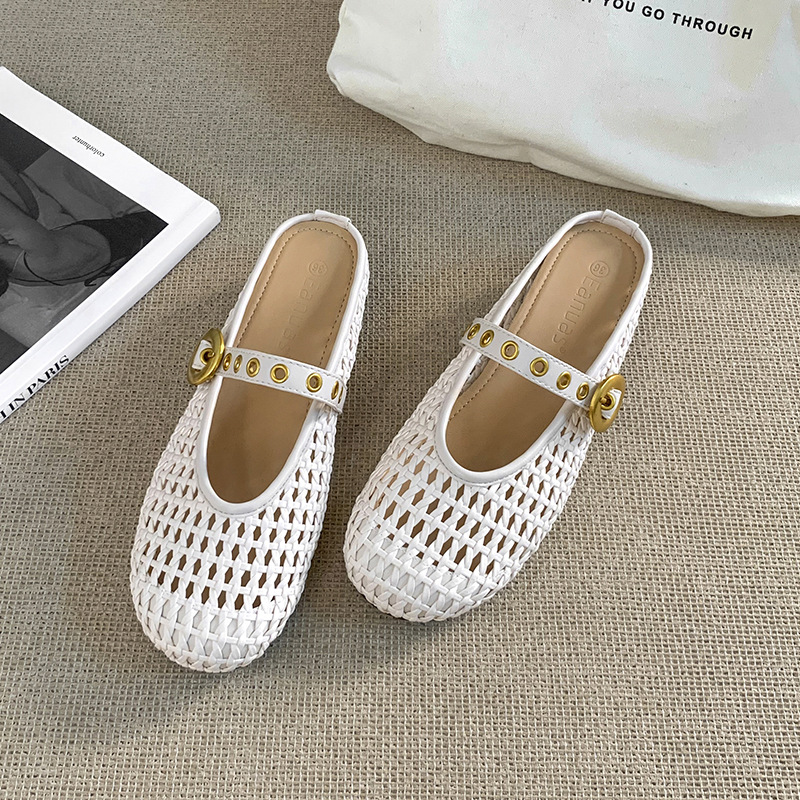 Женские полусабо в ретро стиле с вырезанным носком, новая модель 2025 года, удобные и лёгкие, модные однотонные тапочки с металлической пряжкой