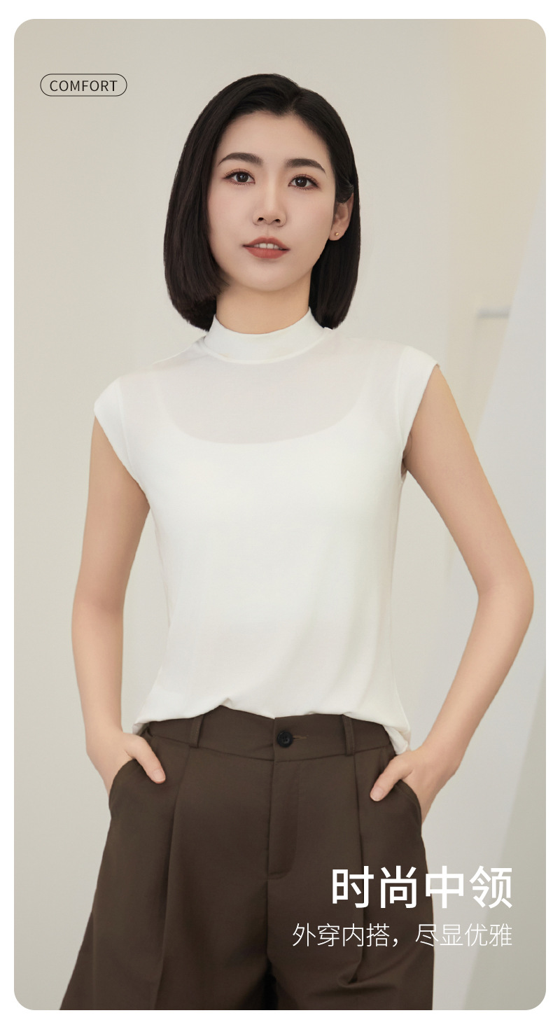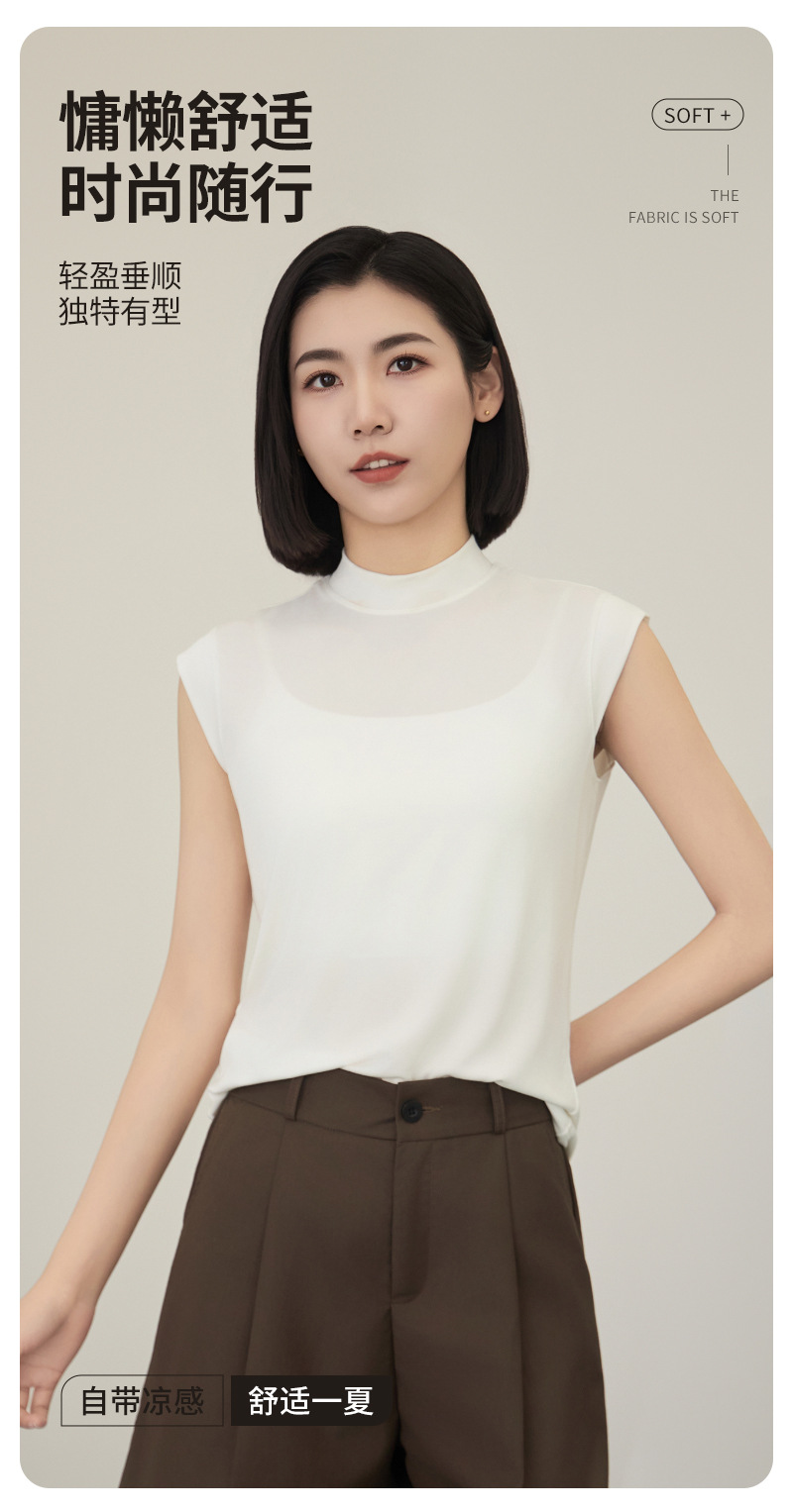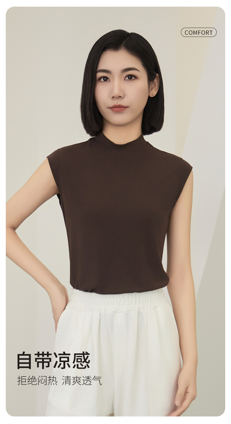 Женский жилет, весенне-летний новый модальный крутой антибактериальный дезодорант Lenzing, тонкий верх без рукавов с половиной воротника