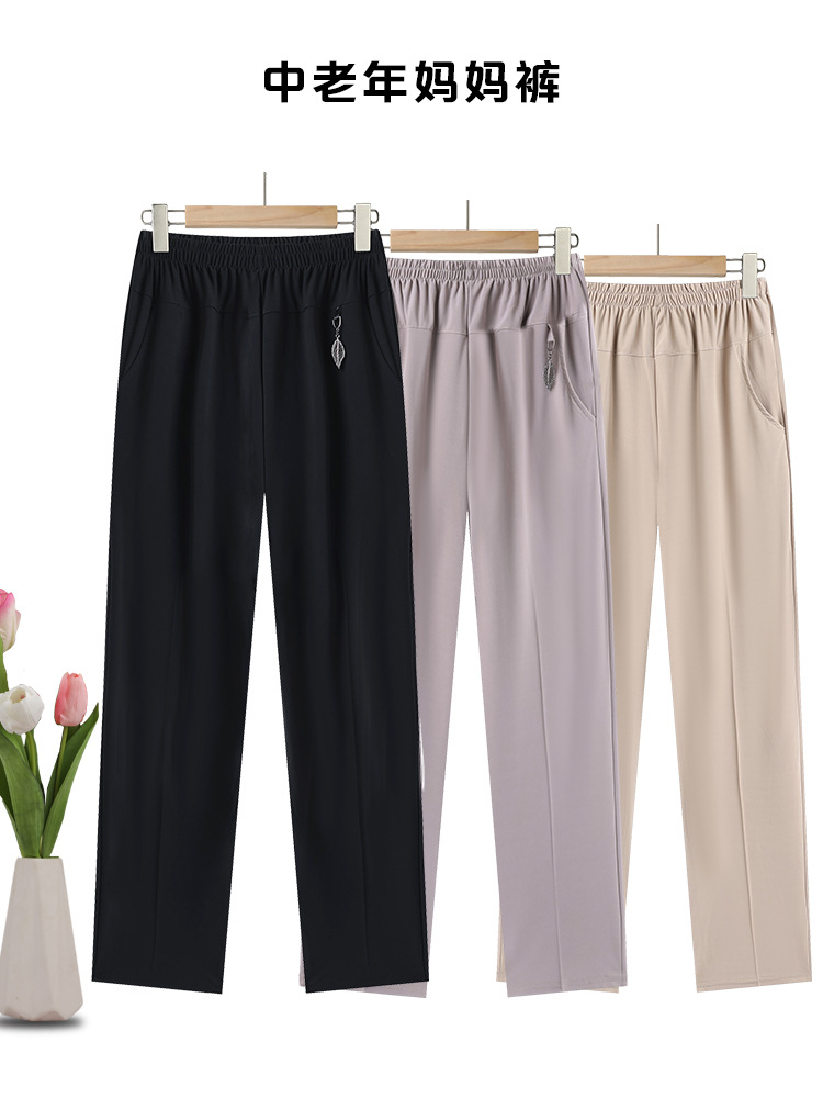 Свободные брюки большого размера для женщин среднего и пожилого возраста для мам, универсальная прямая бабушкинская одежда с высокой талией, летние тонкие эластичные брюки для пожилых людей.