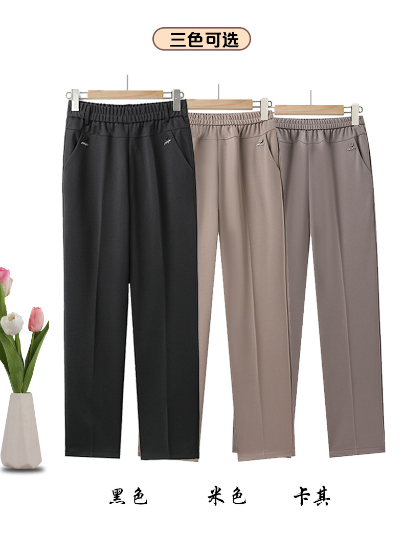 2025 прямые свободные брюки для женщин среднего и пожилого возраста, универсальные летние тонкие эластичные брюки в стиле бабушки с высокой талией для пожилых женщин
