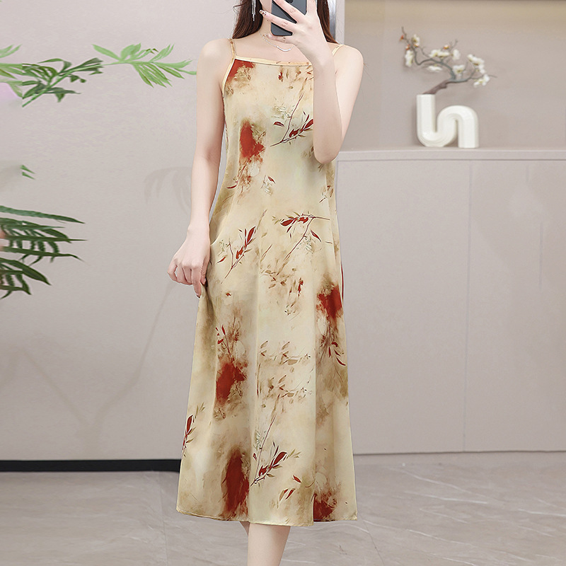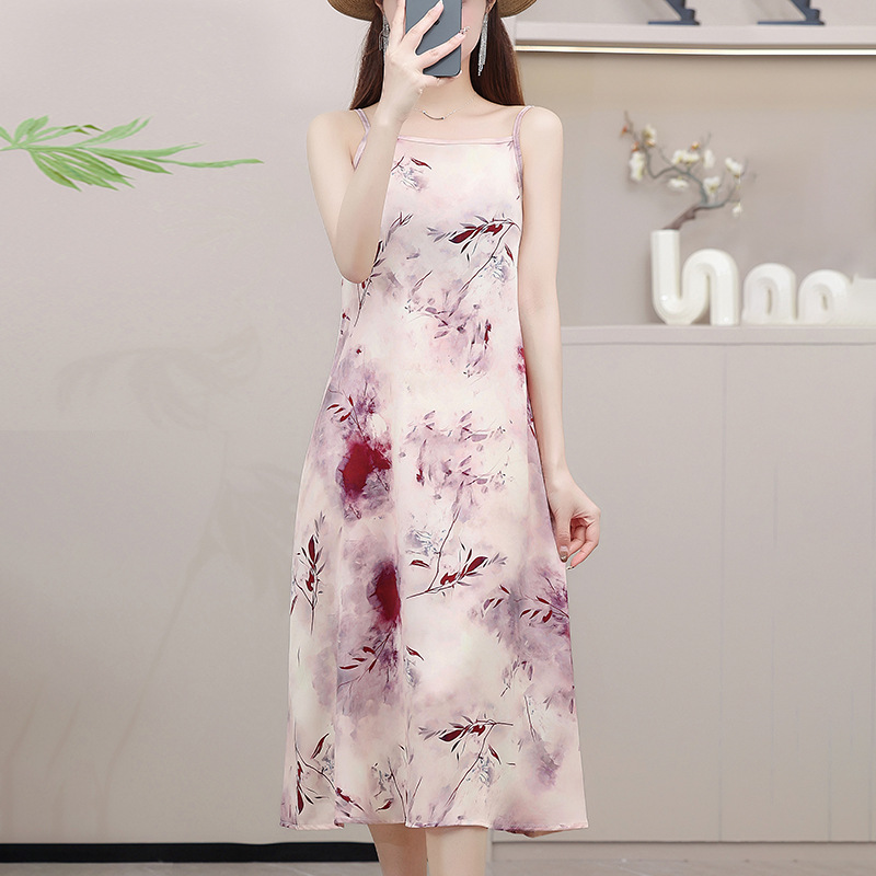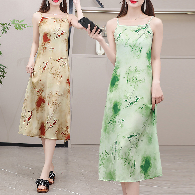 2025 новое платье с короткими рукавами, модное новое платье с цветочным принтом на подтяжках, юбка средней длины для похудения живота