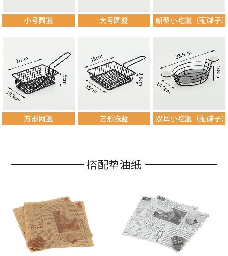 Коническая корзина для жарки черного цвета ♢; Наклонная корзина для закусок черная ♢; Маленькая круглая корзина черного цвета ♢; Большая круглая корзина черного цвета ♢; Прямоугольная корзина для картофеля фри черная ♢; квадратный светло-голубой ♢; 100 листов бежевого бумаги размером 22 см. ♢; 100 листов белой бумаги размером 22 см. ♢; 100 листов коричневой газетной бумаги шириной 18 см. ♢; Квадратная черная корзина для картофеля фри ♢; 100 листов бежевого бумаги формата 18 см. ♢; Корзина для картофеля фри в форме лодочки с керамической тарелкой ♢; 22 белых газеты по 100 листов. ♢; 22 коричневых газет, 100 листов. ♢; 22 газеты 100 листов ♢; 18 газет 100 листов ♢; 18 белых газет по 100 листов. ♢; 25 коричневых газет по 100 листов. ♢; 25 белых газет по 100 листов. ♢; Сталь 304 Z ряд большой черный ♢; Сталь 304 Z ряд маленький черный ♢; Корзина для картофеля фри с двойным ухом и тарелкой ♢