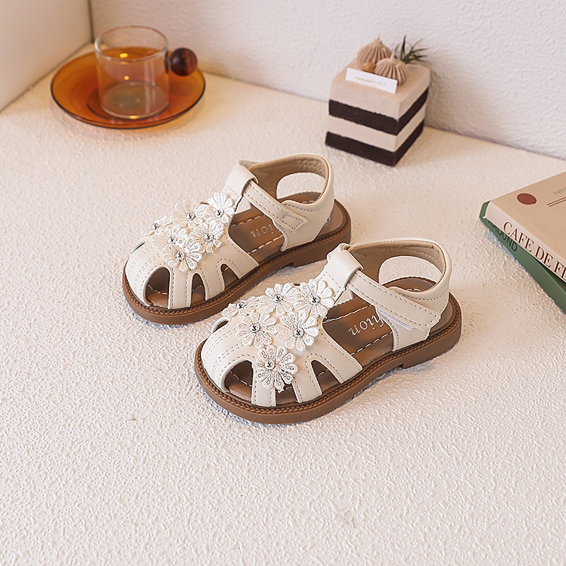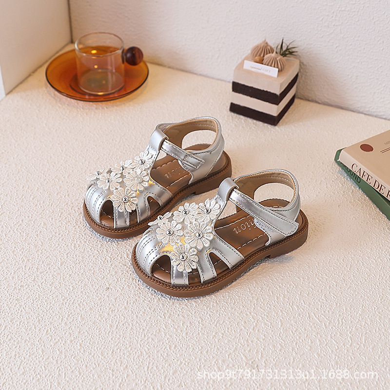 Детские пляжные босоножки с цветочным декором, нишевый дизайн, высокое качество, мягкая подошва, лето 2025 года.