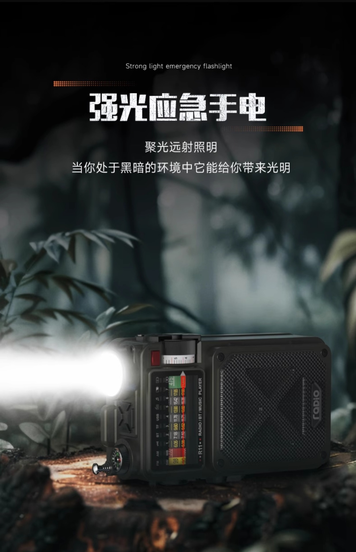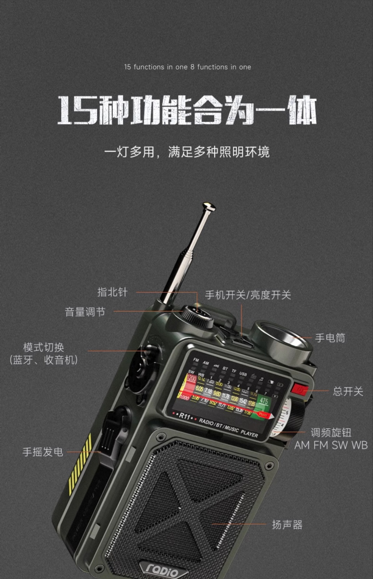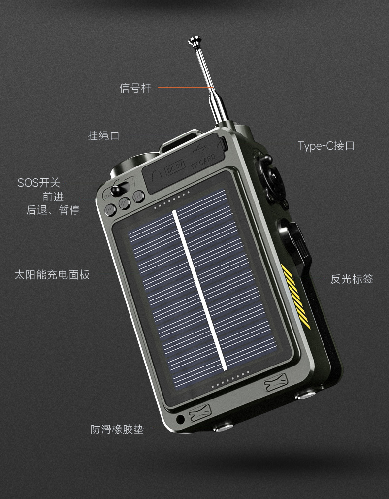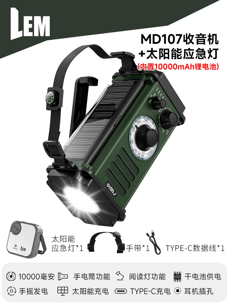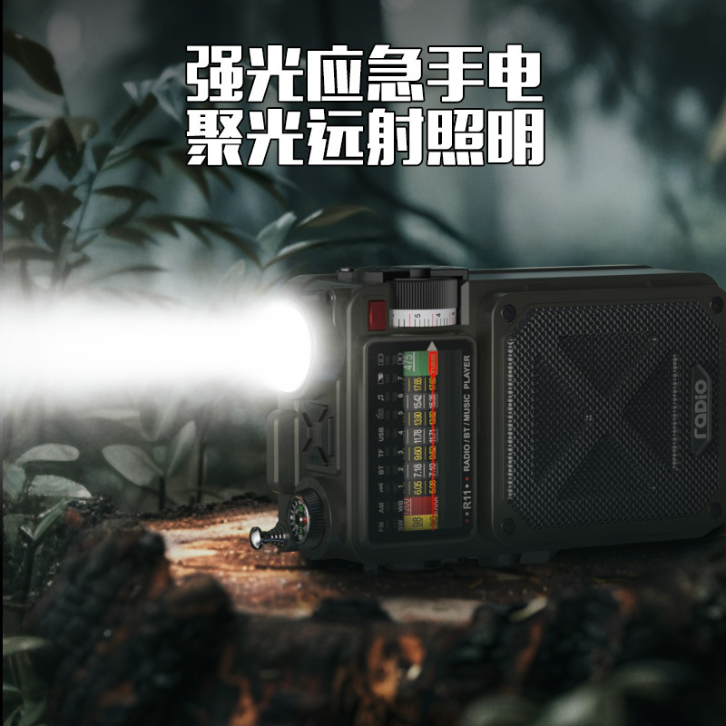 Многофункциональное радио с ручным управлением, фонарик с солнечной зарядкой, военная готовность, предотвращение стихийных бедствий, оборудование для экстренного выживания.