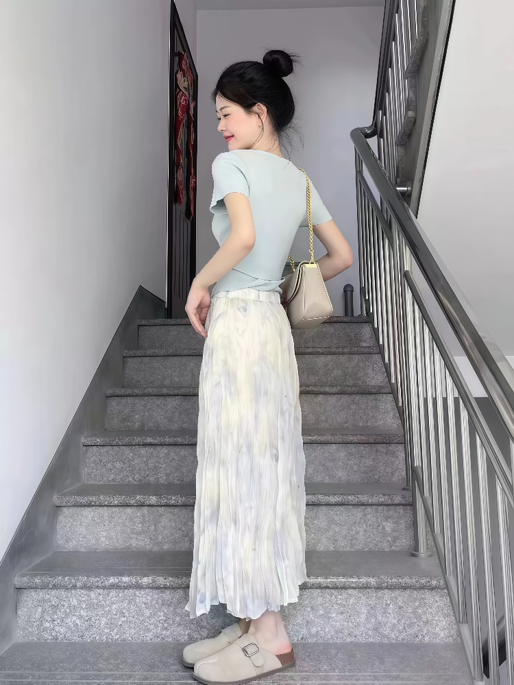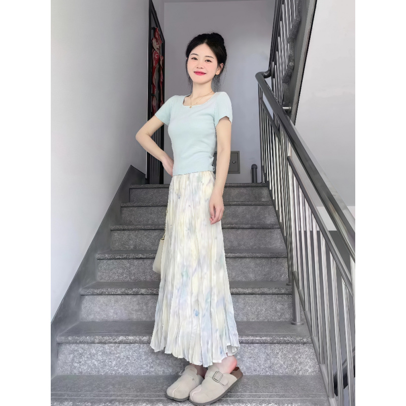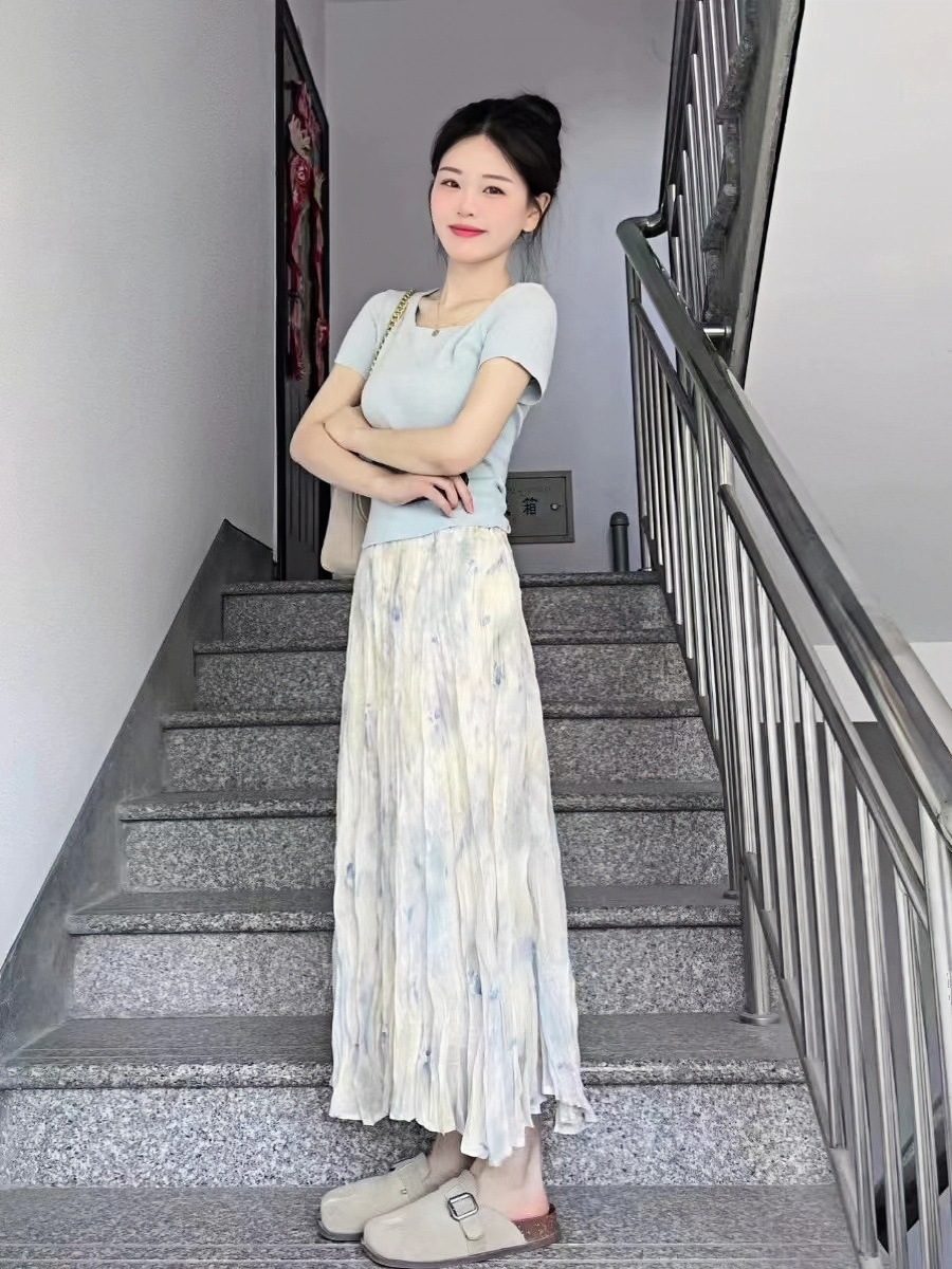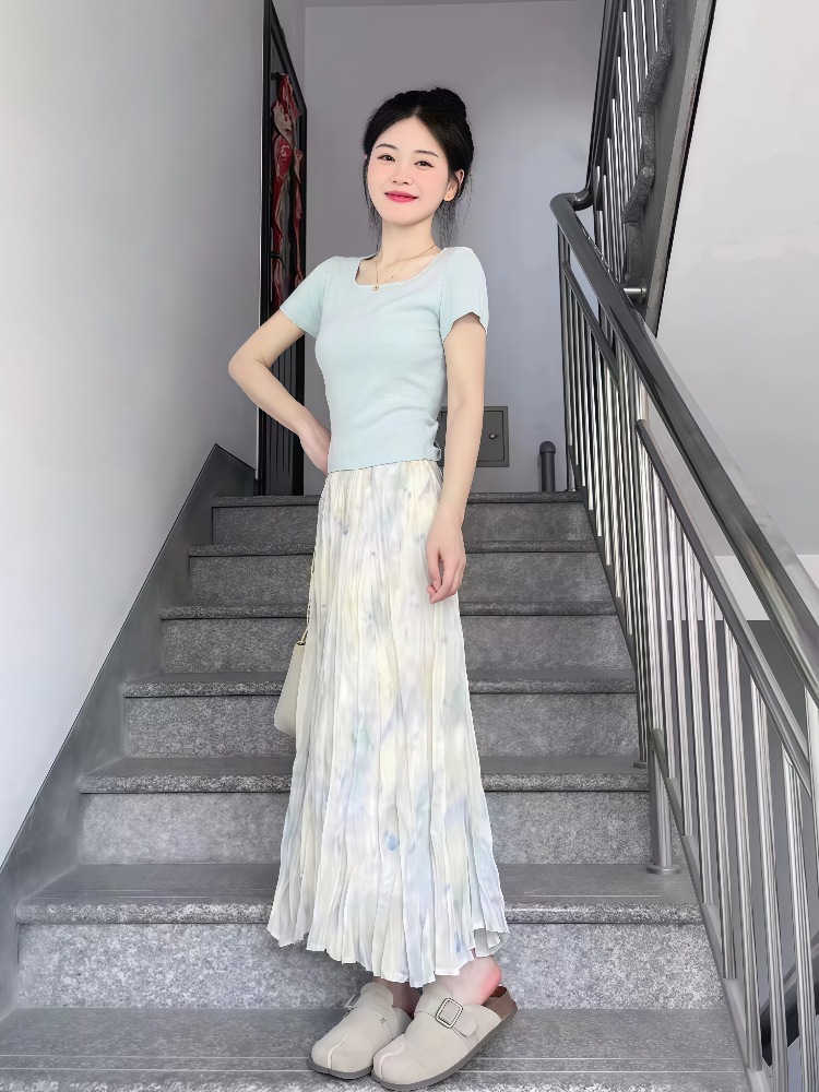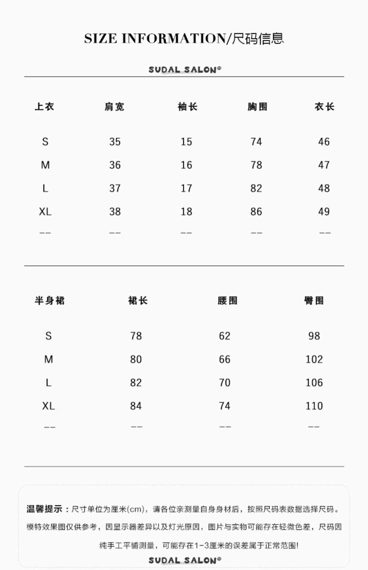 Летняя одежда сочетается с полным комплектом трикотажных топов и юбок с короткими рукавами в миниатюрном, нежном и зрелом стиле, состоящих из двух частей.