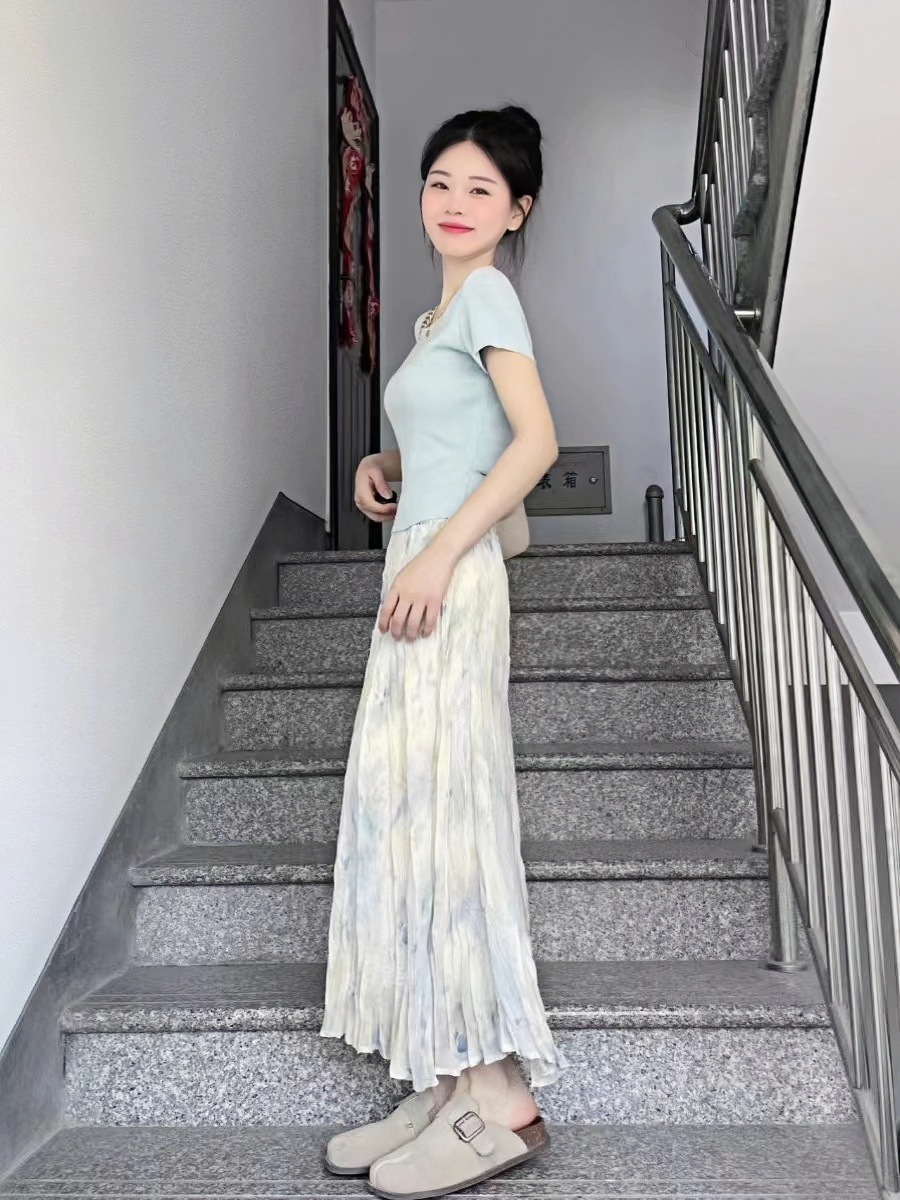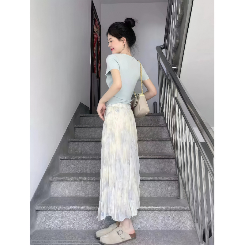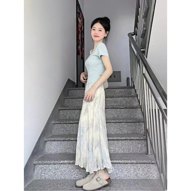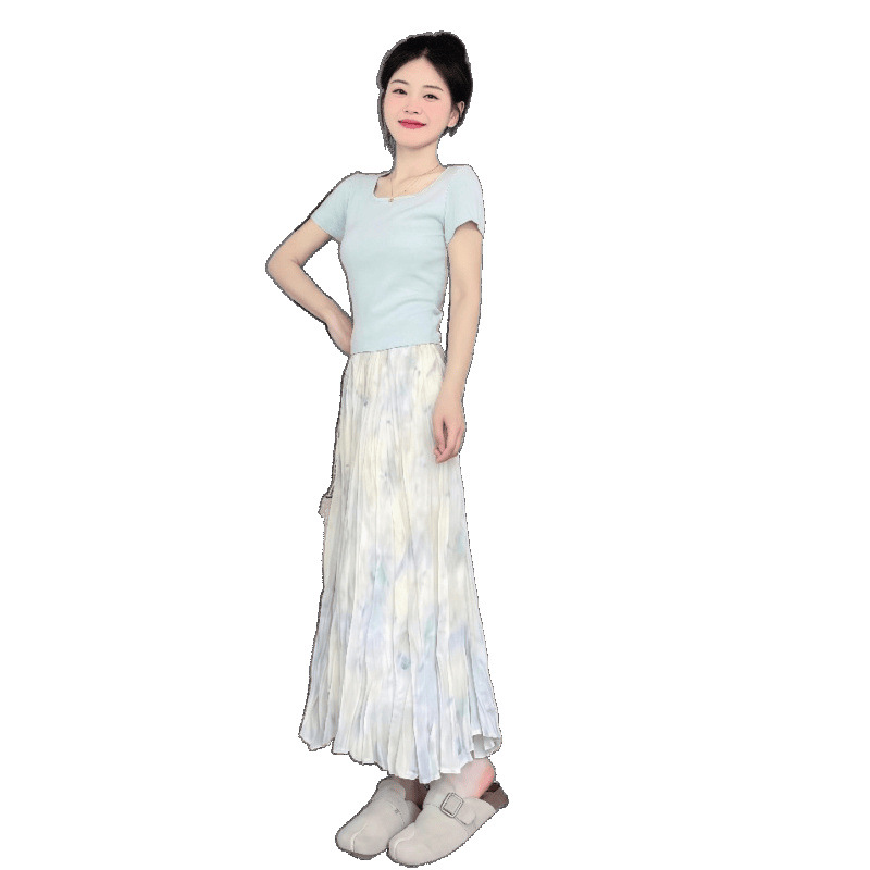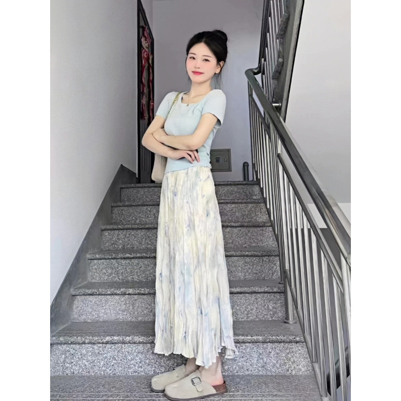 Летняя одежда сочетается с полным комплектом трикотажных топов и юбок с короткими рукавами в миниатюрном, нежном и зрелом стиле, состоящих из двух частей.