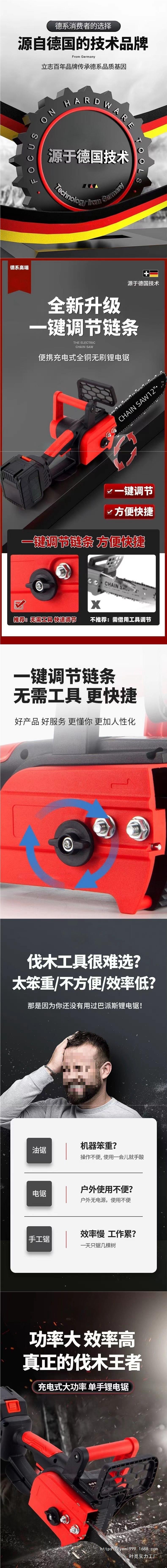 Немецкая электрическая бензопила, литиевая электрическая бензопила, аккумуляторная пила, портативная уличная бытовая маленькая лесозаготовительная пила, цепная пила для обрезки деревьев
