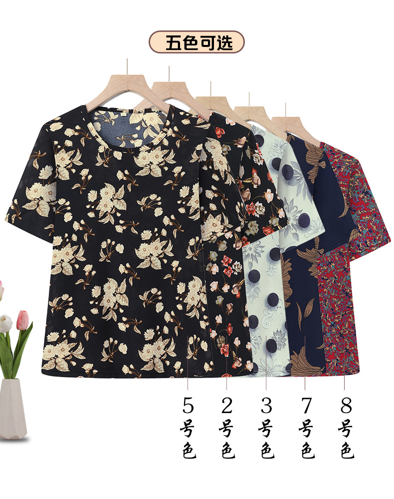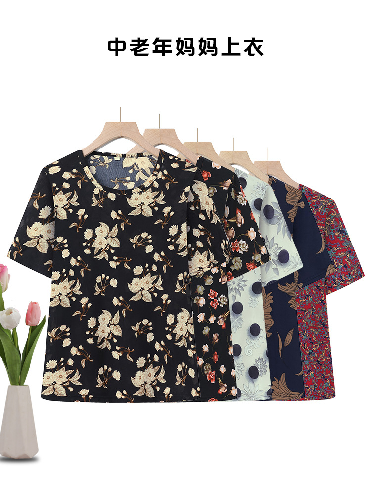 Летние тонкие футболки для женщин среднего и пожилого возраста, летняя одежда для старух, модная бабушкинская одежда с короткими рукавами.