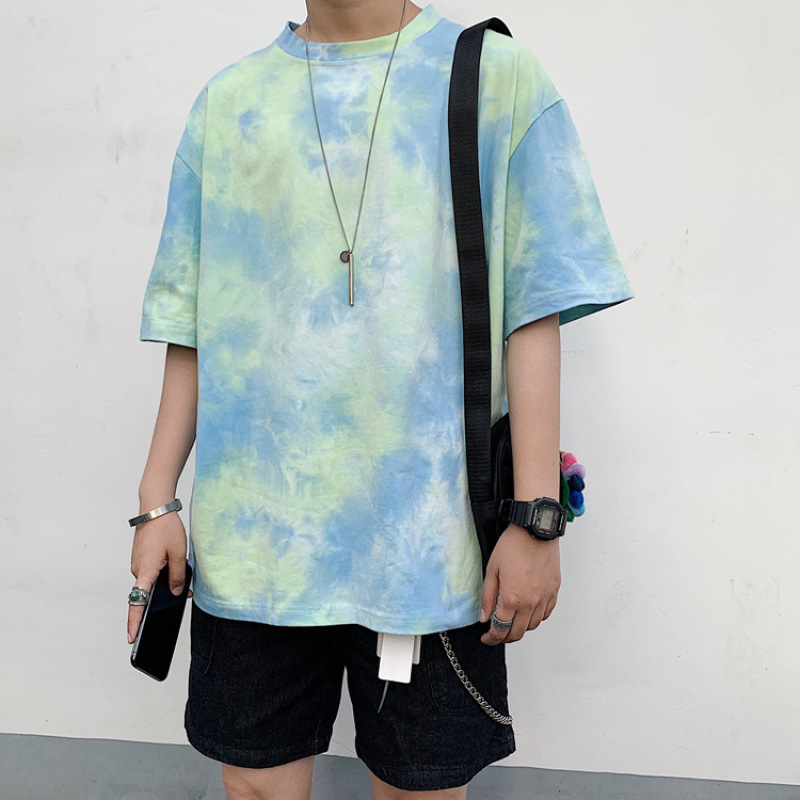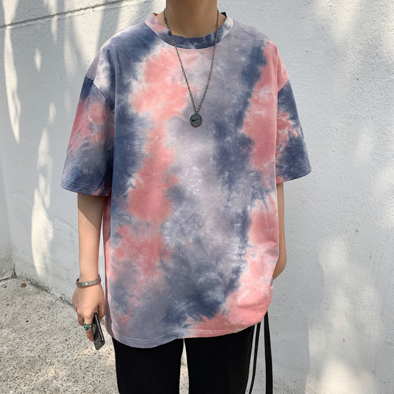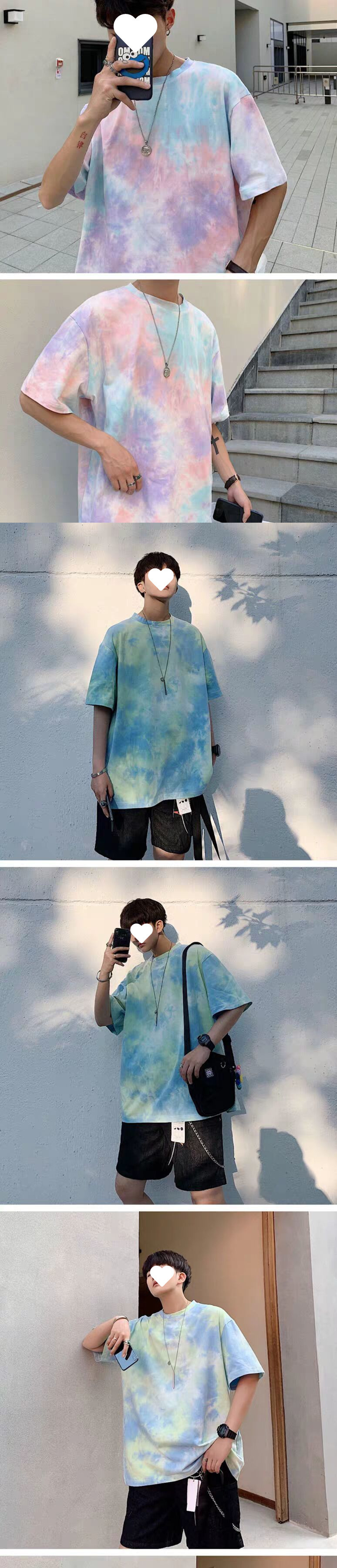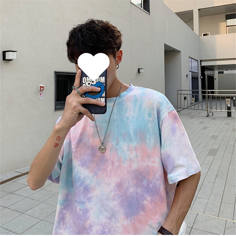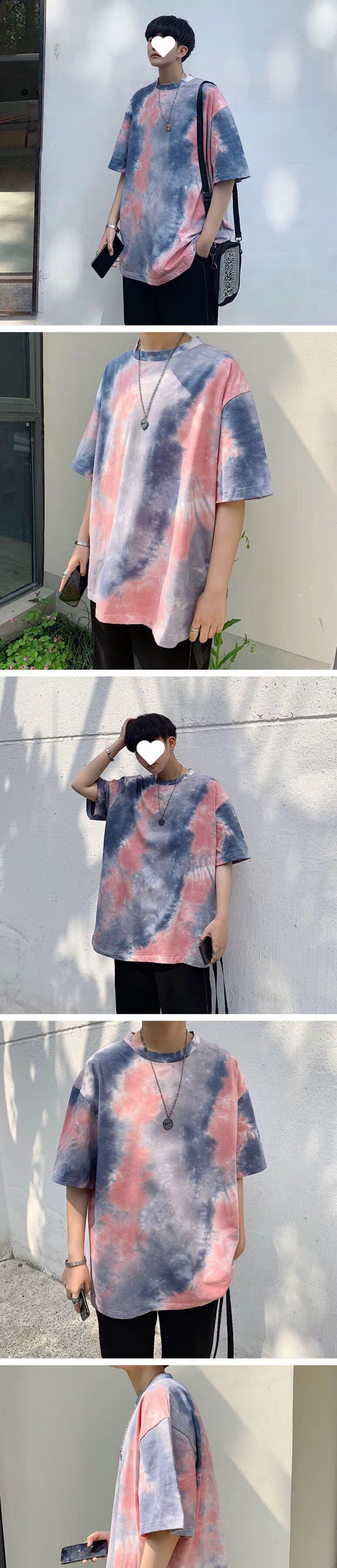 Модная мужская футболка с короткими рукавами и градиентным принтом тай-дай, свободный топ, корейский стиль, универсальный полурукав унисекс для пары со средним рукавом