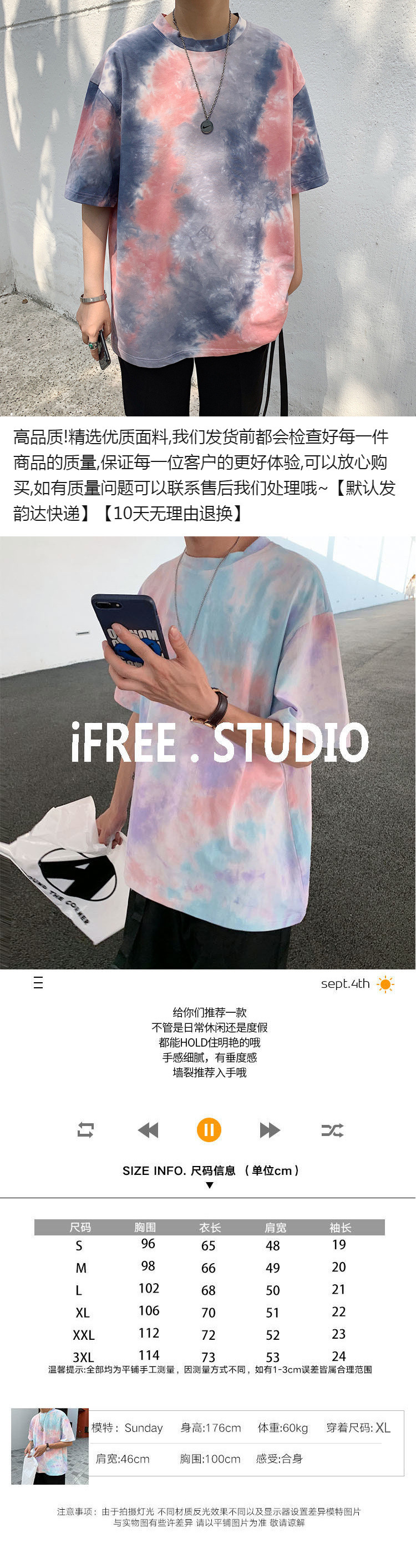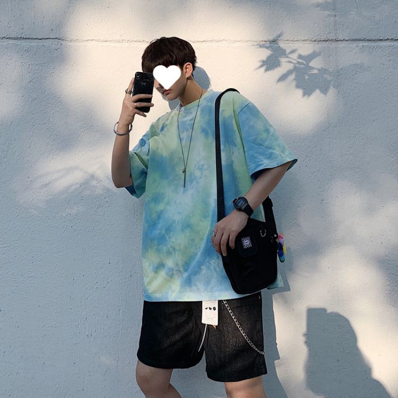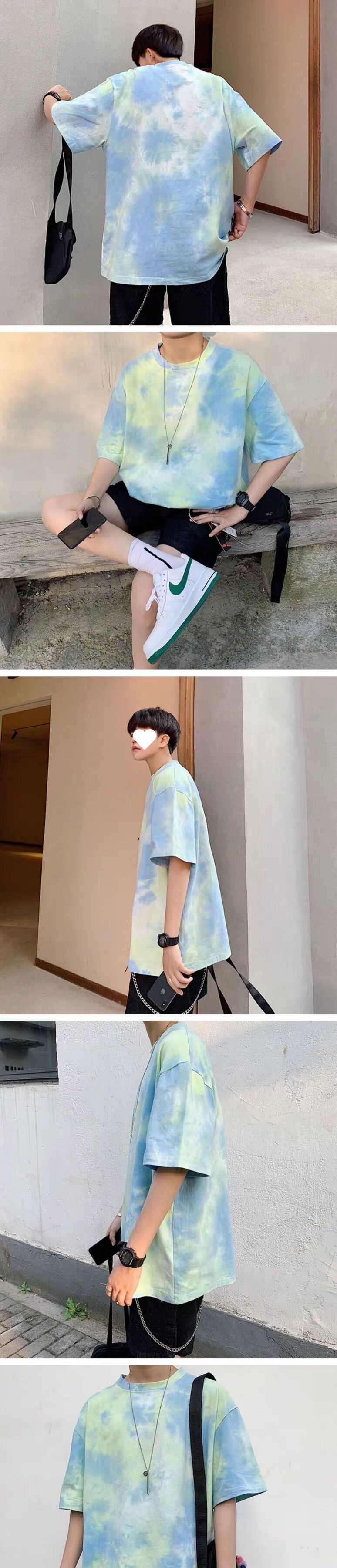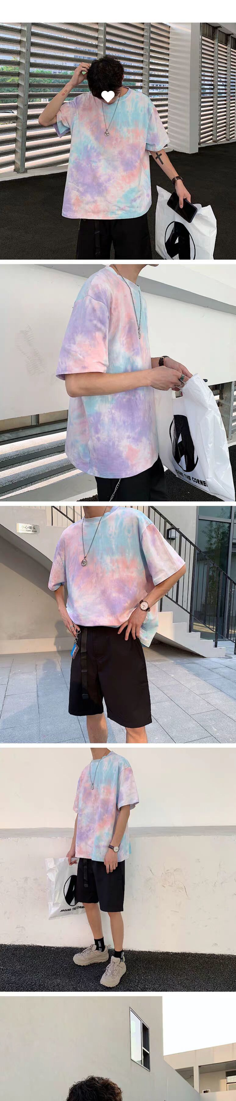 Модная мужская футболка с короткими рукавами и градиентным принтом тай-дай, свободный топ, корейский стиль, универсальный полурукав унисекс для пары со средним рукавом