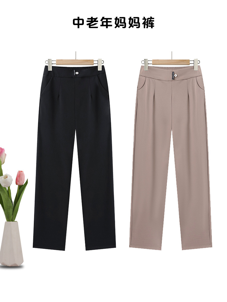 2025 прямые свободные брюки для женщин среднего и пожилого возраста, универсальные летние тонкие эластичные брюки в стиле бабушки с высокой талией для пожилых женщин
