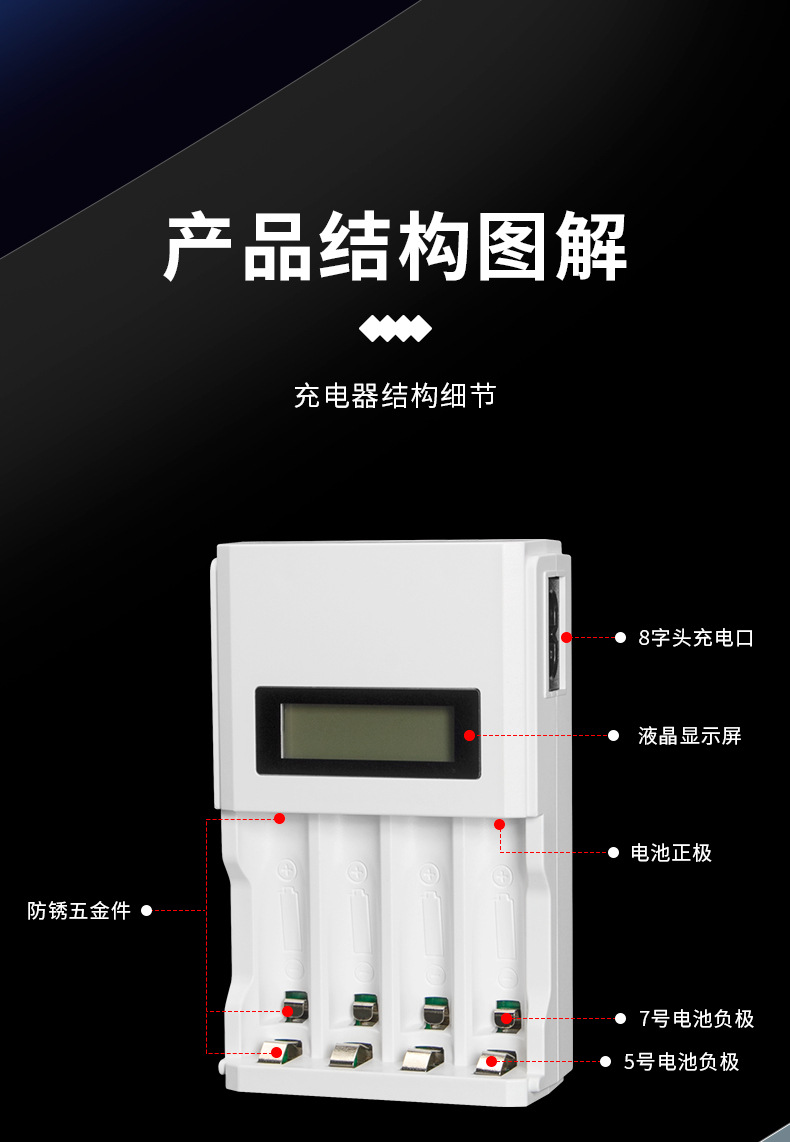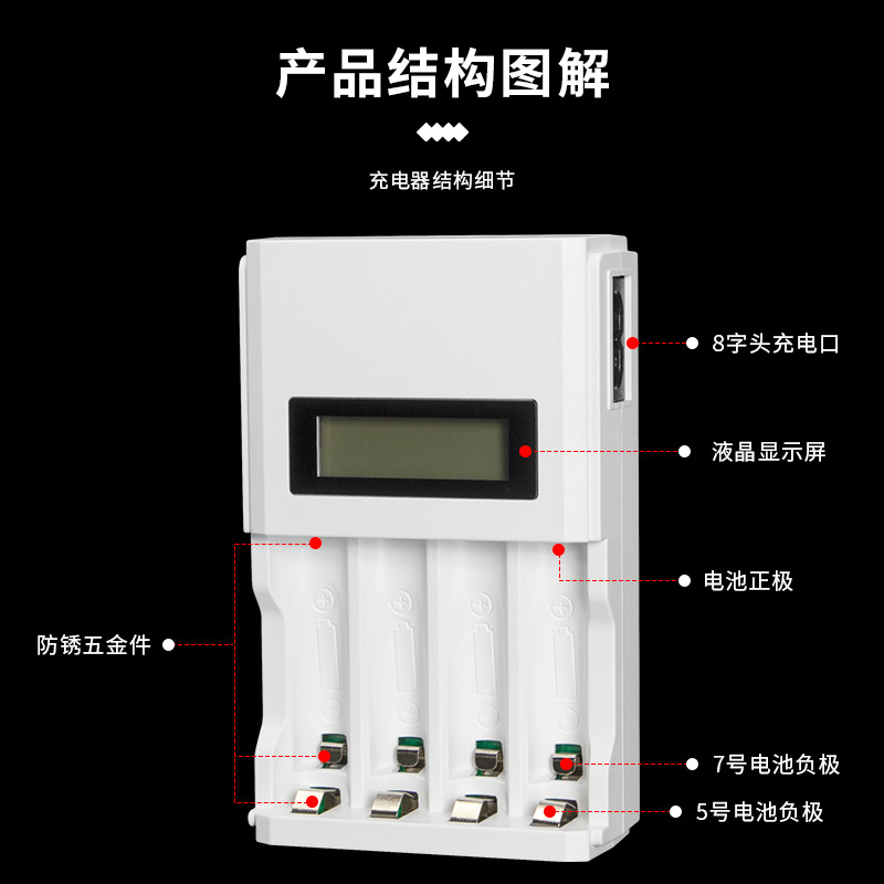 № 5 № 7 Зарядное устройство с четырьмя слотами для ЖК-дисплея